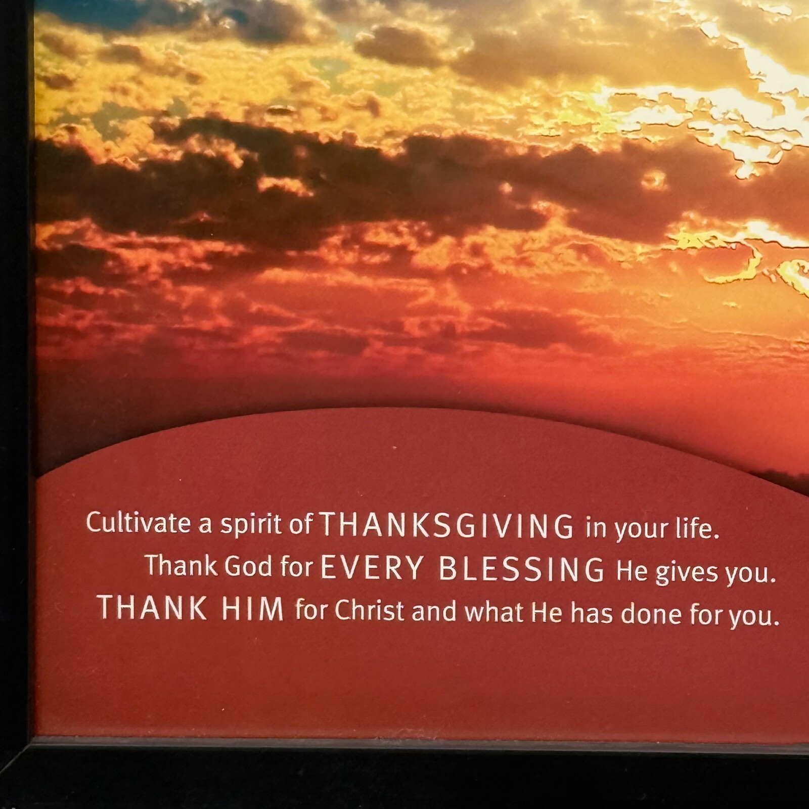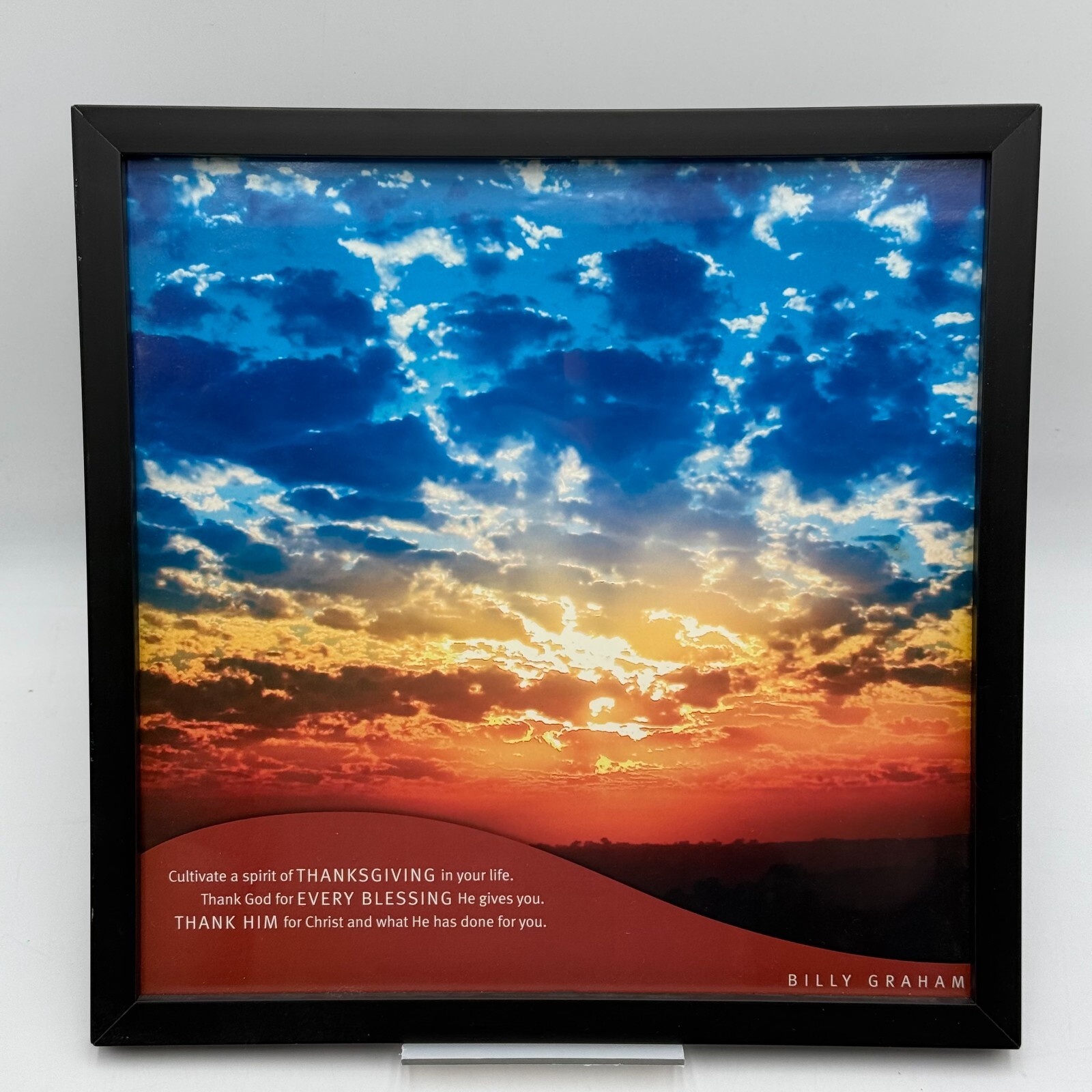 This beautifully framed 13x13 picture is a stunning representation of a sunset, with an inspiring Bible quote from Billy Graham.