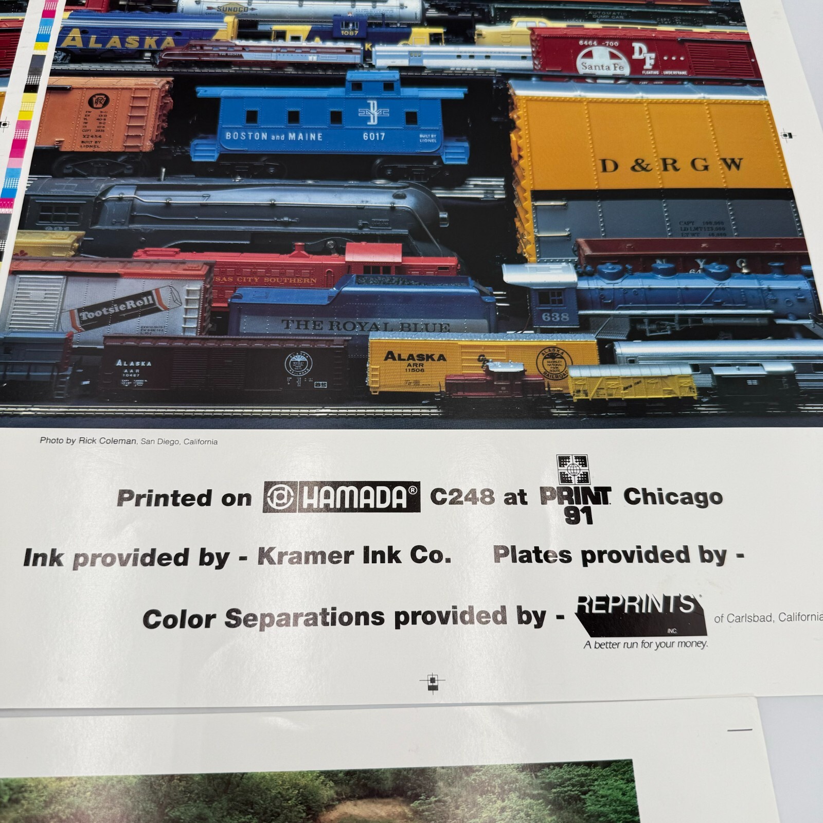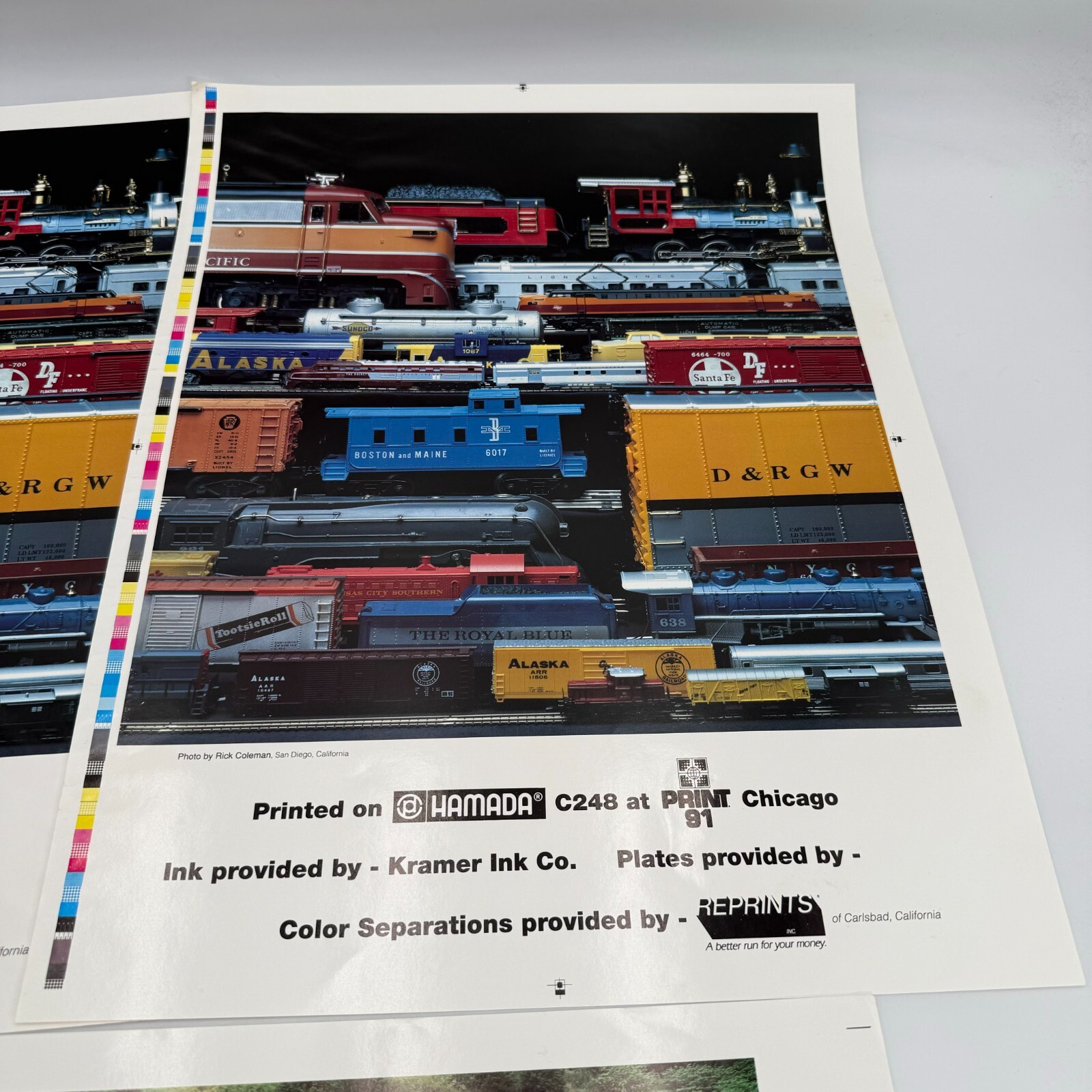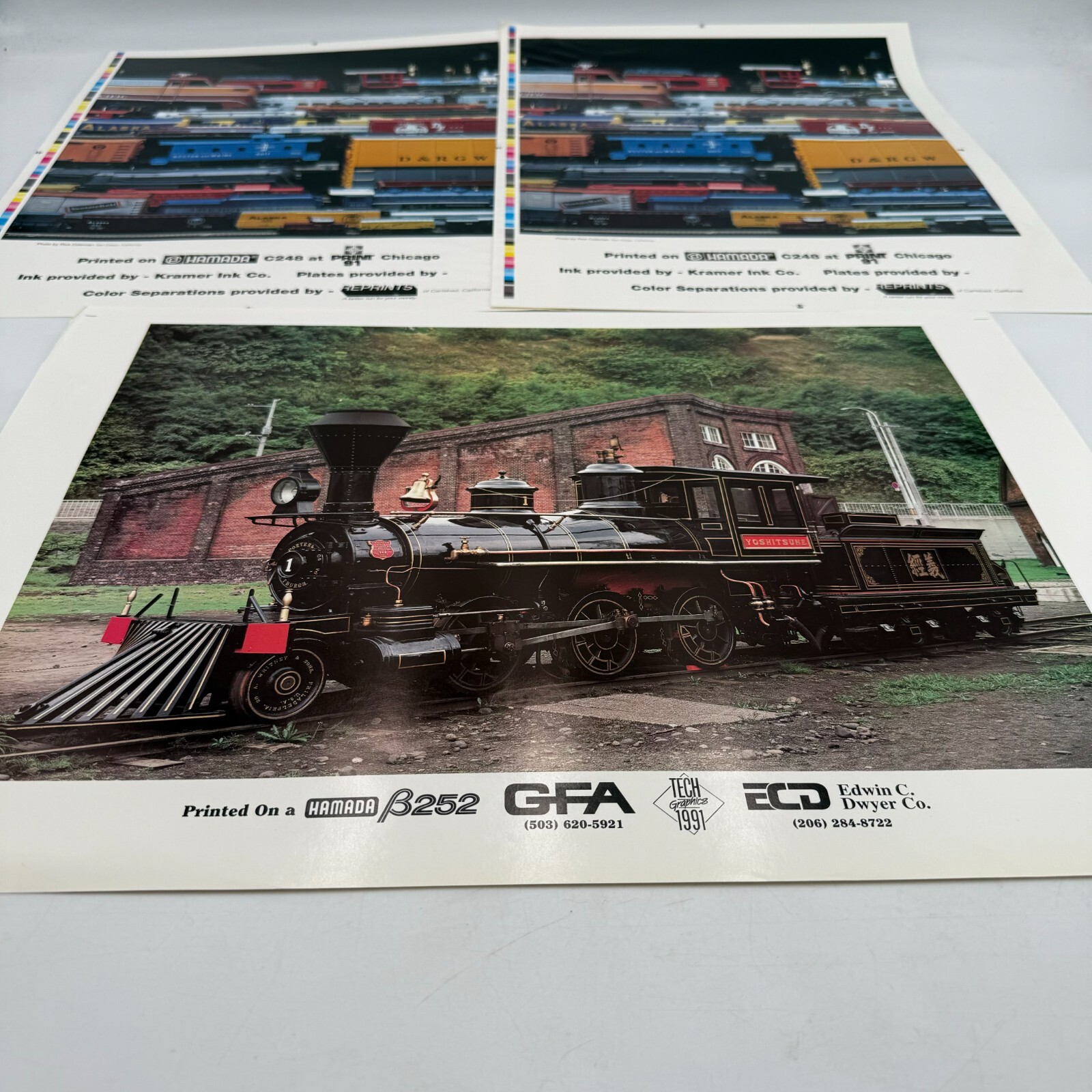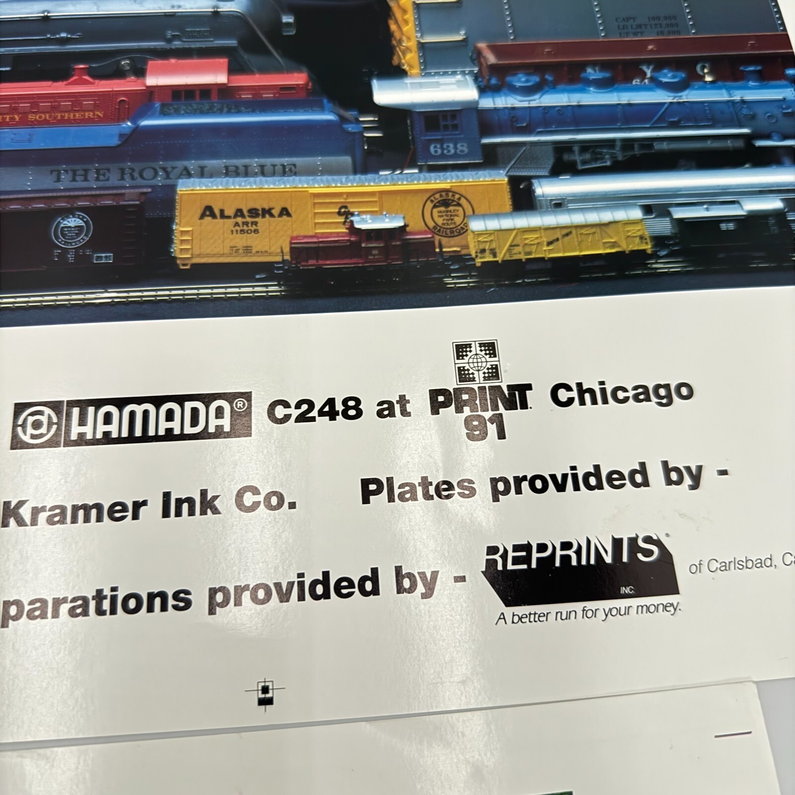 This vintage Chicago Prints photograph features a locomotive train and a duplicate model rail car, measuring 14x20 inches. The image captures the essence of transportation and railroadiana, making it a perfect addition to any collection. The photograph is a great representation of the past, showcasing the beauty of the railroad and the intricate details of the locomotive train and model car. This collectible is a must-have for any train enthusiast or collector, and it is sure to be a conversation starter in any room.