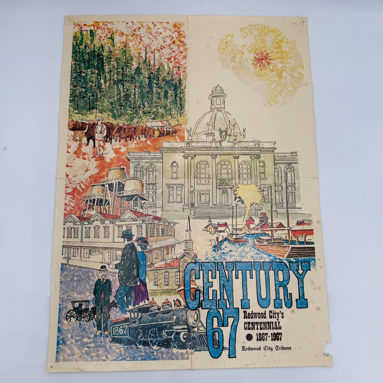 This beautiful poster celebrates the centennial of Redwood City, featuring artwork that captures the essence of the town. Measuring 16x22 inches, it is a perfect addition to any art collection or a great way to decorate your space. The poster is printed on high-quality paper and is sure to last for years to come.