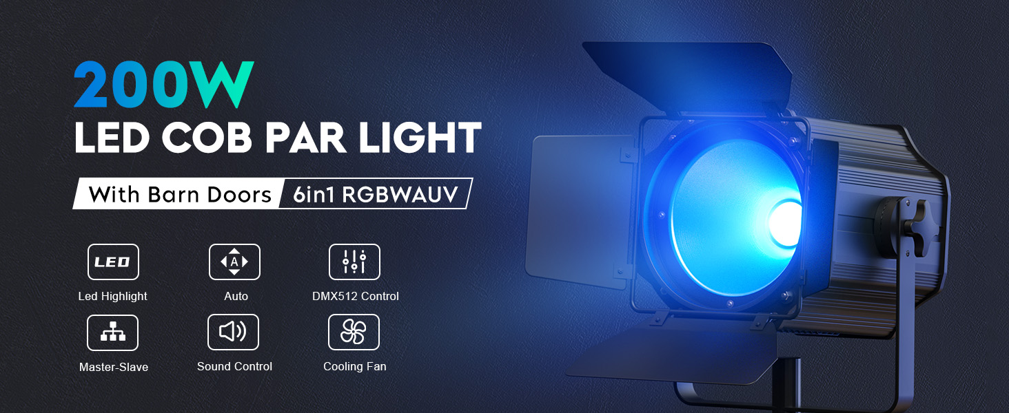 Light source:1PCS 200W 6-in-1 RGBWA+UV COB