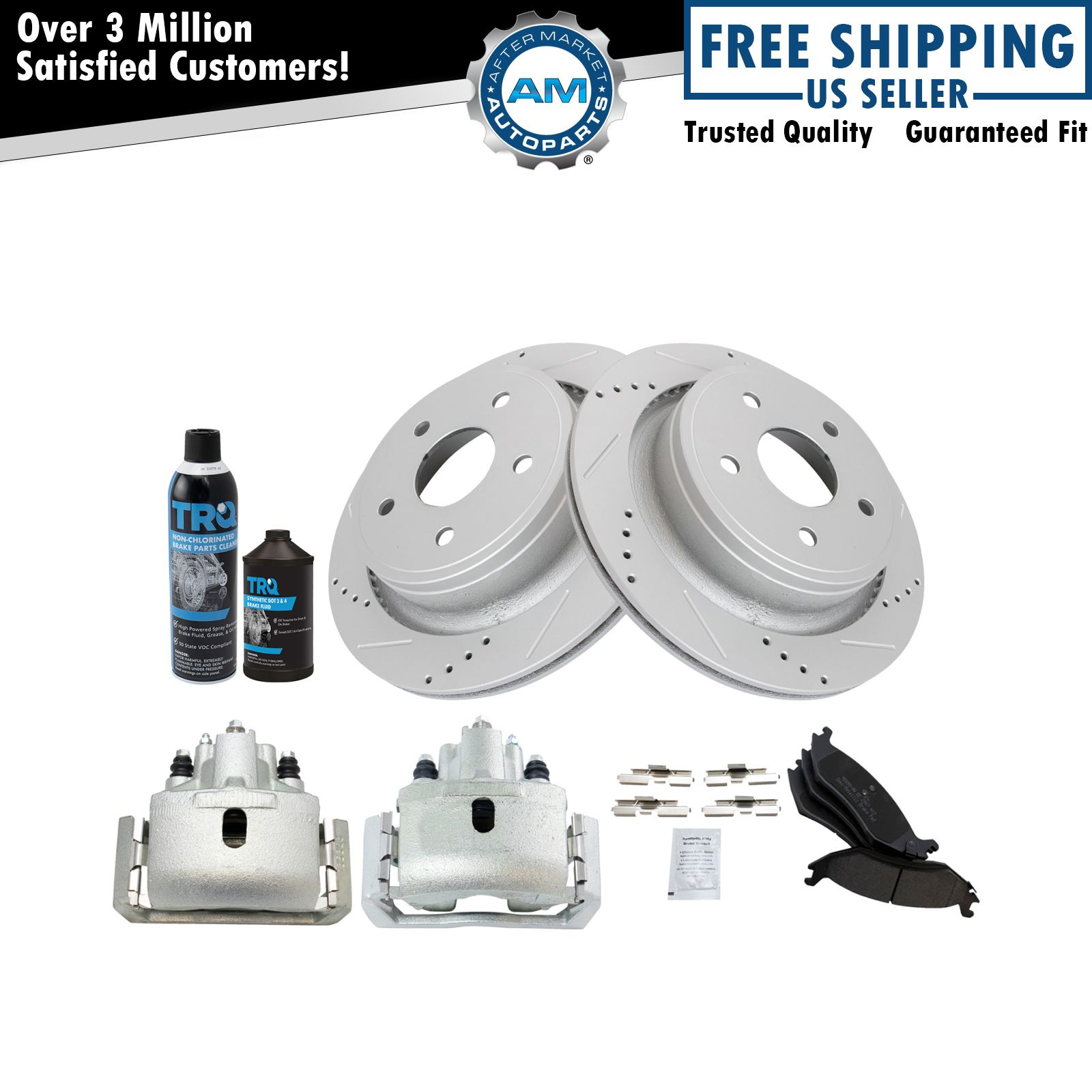 2009-2010 Dodge Ram 1500 Truck Rear Semi-Metallic Premium G-Coated Performance Brake Pad & Rotor Kit with Calipers