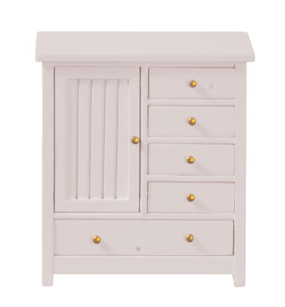 Using a modernist design both pleasing and functional, this baby cabinet has been designed with a simple panelled door, one drawer the width of the cabinet and 4 smaller drawers on the side.