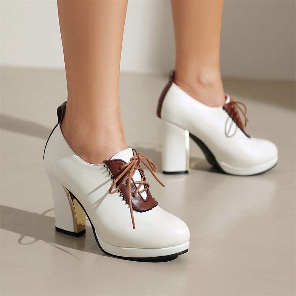 Casual Womens Lace Up Platform High Block Heels Loafer Oxfords Ankle Shoes New