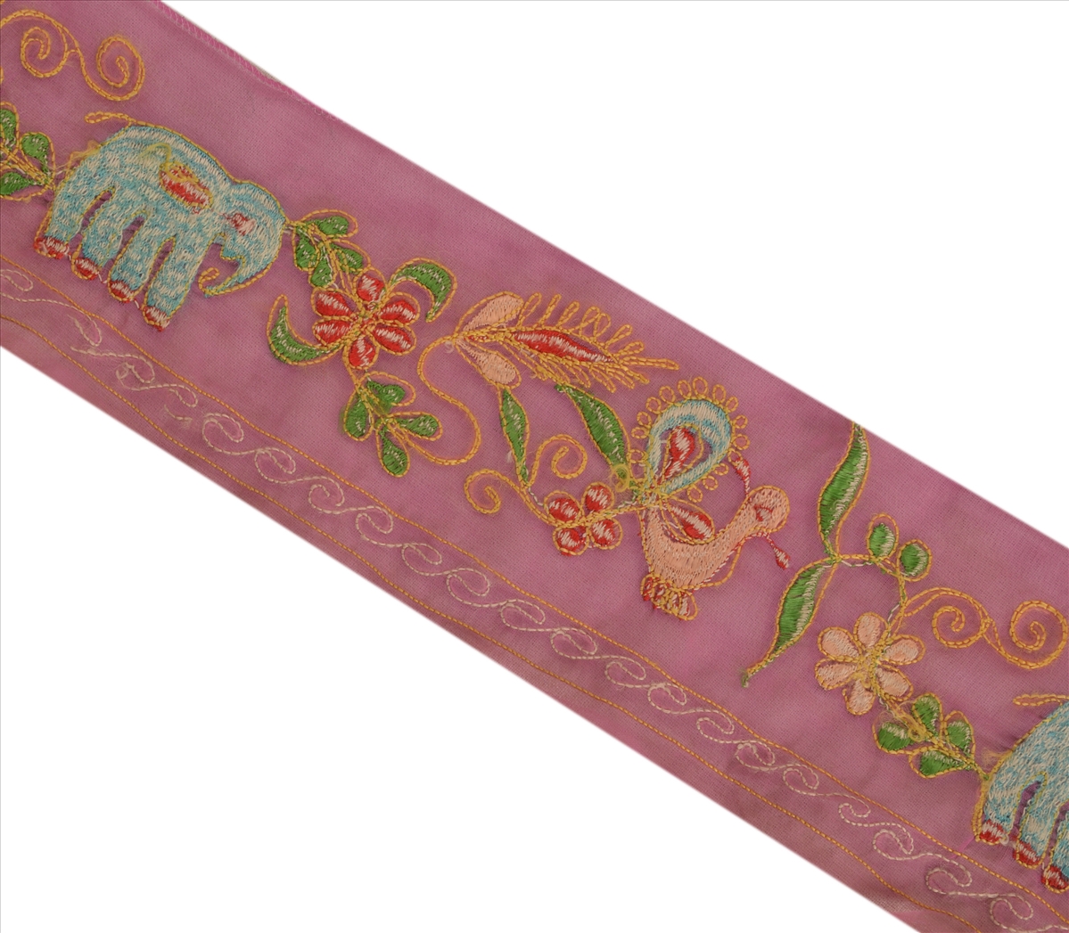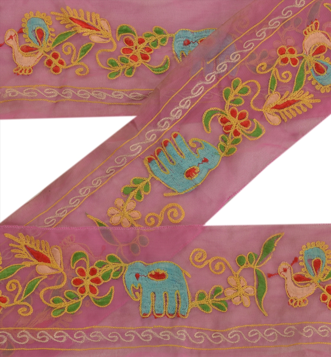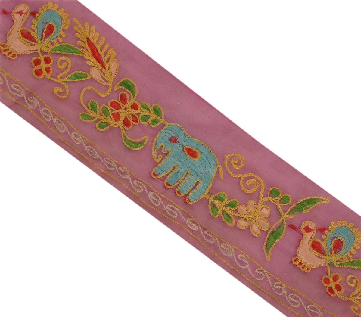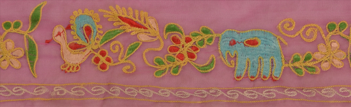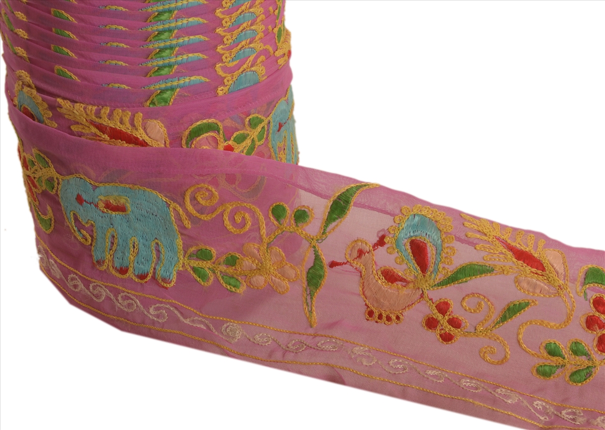 Nameonlabel : Vintage Sari Border Antique Hand Embroidered 1 YD Indian Trim Peacock Pink Lace