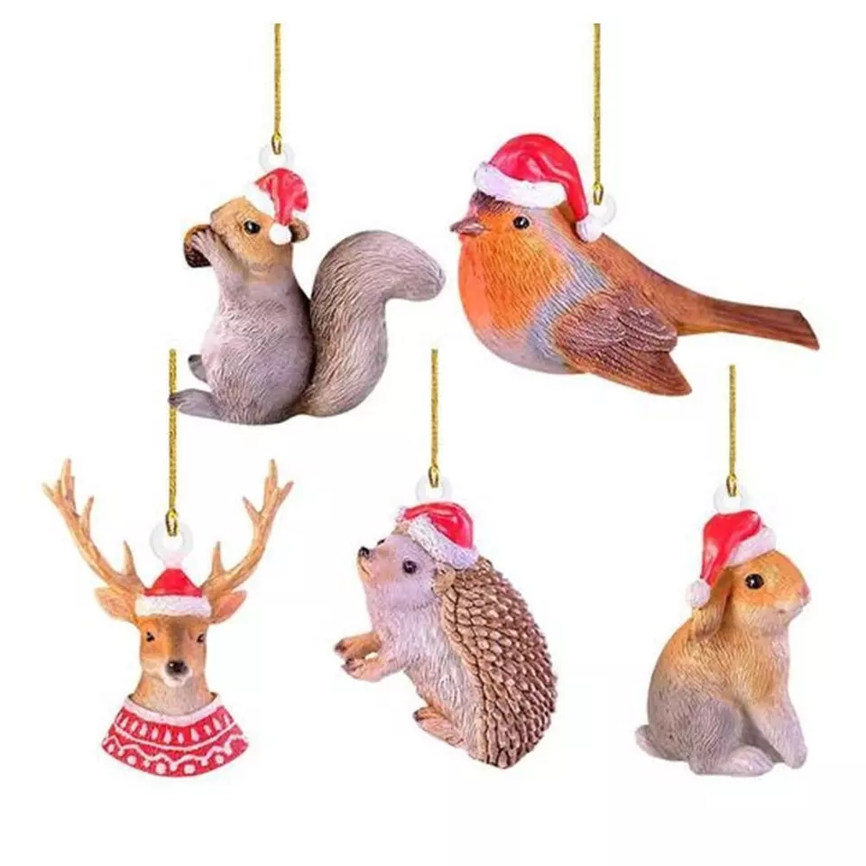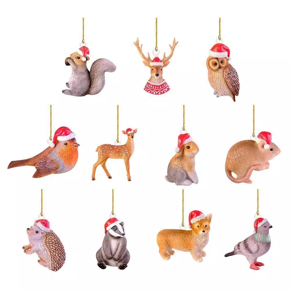 3.9“ 10cm Laser Cut Anhänger flach Acryl Weihnachten rote Weihnachtsmütze Tiere Ornament für Xmas Geschenk Weihnachtsgeschenk
