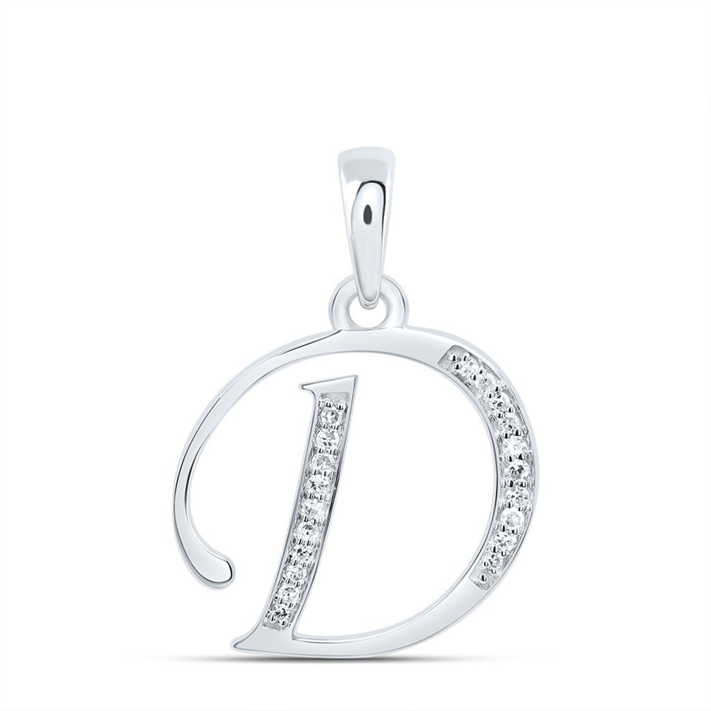 This eye-catching diamond Initial / Letter "D" Pendant Charm is crafted in solid 10K White Gold and shimmering White diamonds, ensuring sparkle from every angle. Radiant with 1/12 ct. t.w. of diamonds, this pendant is polished to a lustrous shine. Exclusive style has a well built frame with an open back to withstand everyday wear and tear. The diamonds are secured in Prong setting close together, making the overall appearance larger and lustrous. Plain gold bail to compliment this pendant. These are all 100% genuine Round cut diamonds with matching clarity and color throughout. This style is available in all the Letters from A to Z. Message for Availability. This Initial Pendant measures 0.60" long and weighs approx. 1 gr. This style would make a perfect addition to your jewelry collection.