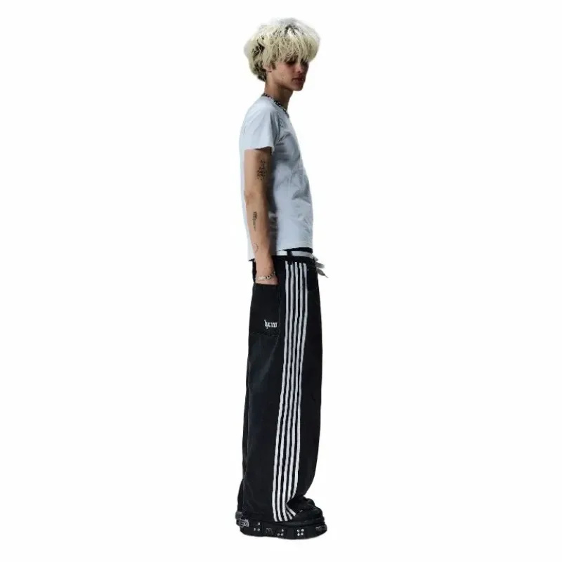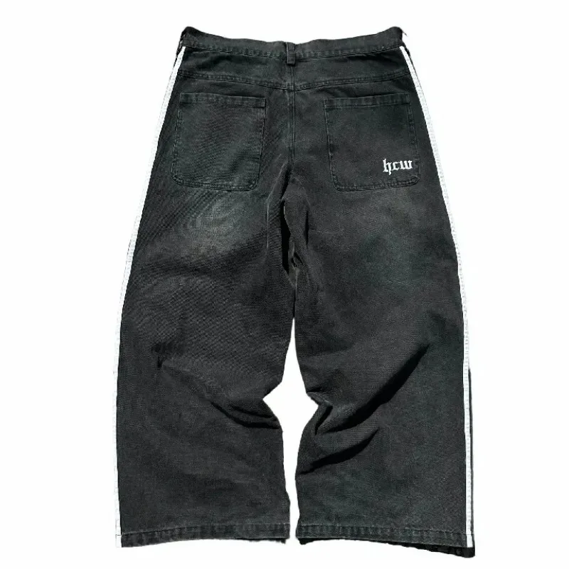 Baggy Jeans Harajuku Got Jeans for Men Black Striped New Hip Hop Embroidered Wide Leg Denim Pants High Street Streetwear
