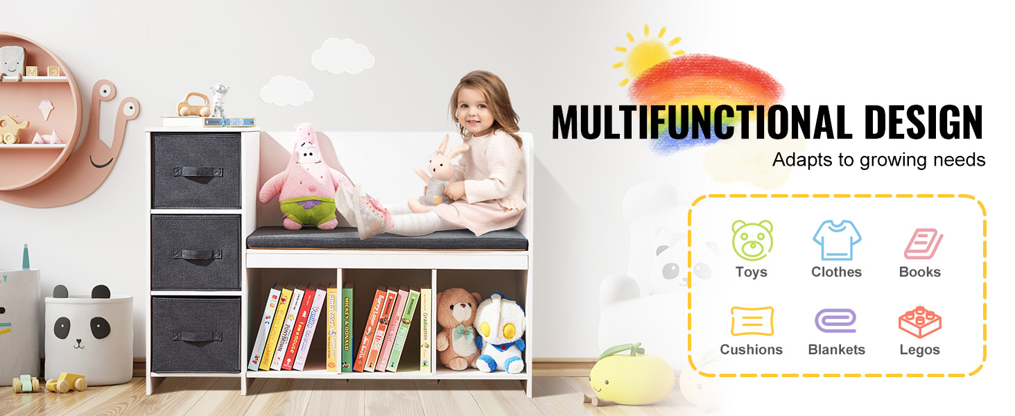 The VEVOR kids storage bench is not just a seat; it's a growth companion for your child, flexibly adapting to the needs of different age groups and keeping their space organized.