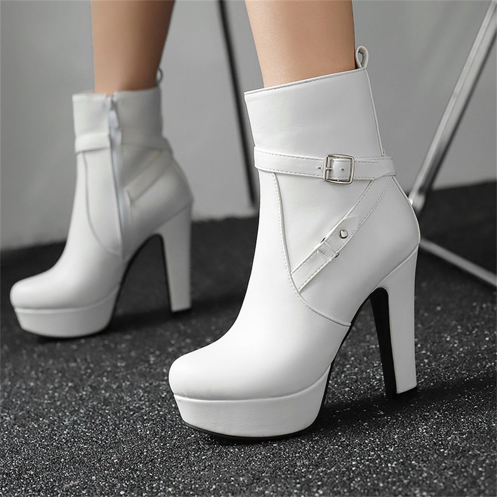 New Fashion Womens Platform Buckle Strap High Heels Zip Western Club Ankle Boots