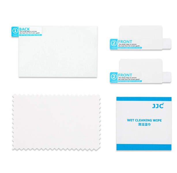 Package contains wet cleaning wipe, microfiber cleaning cloth for easy clean. The protector also gifts you a pair of PET guard film for camera sub-screen, subject to specific camera model.