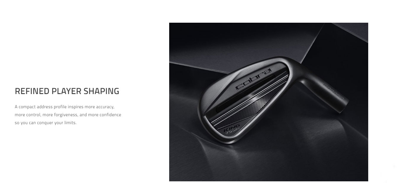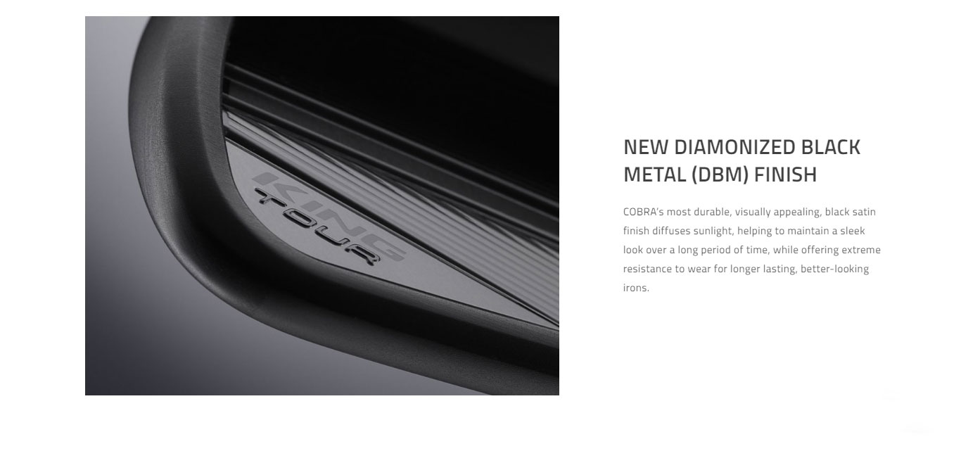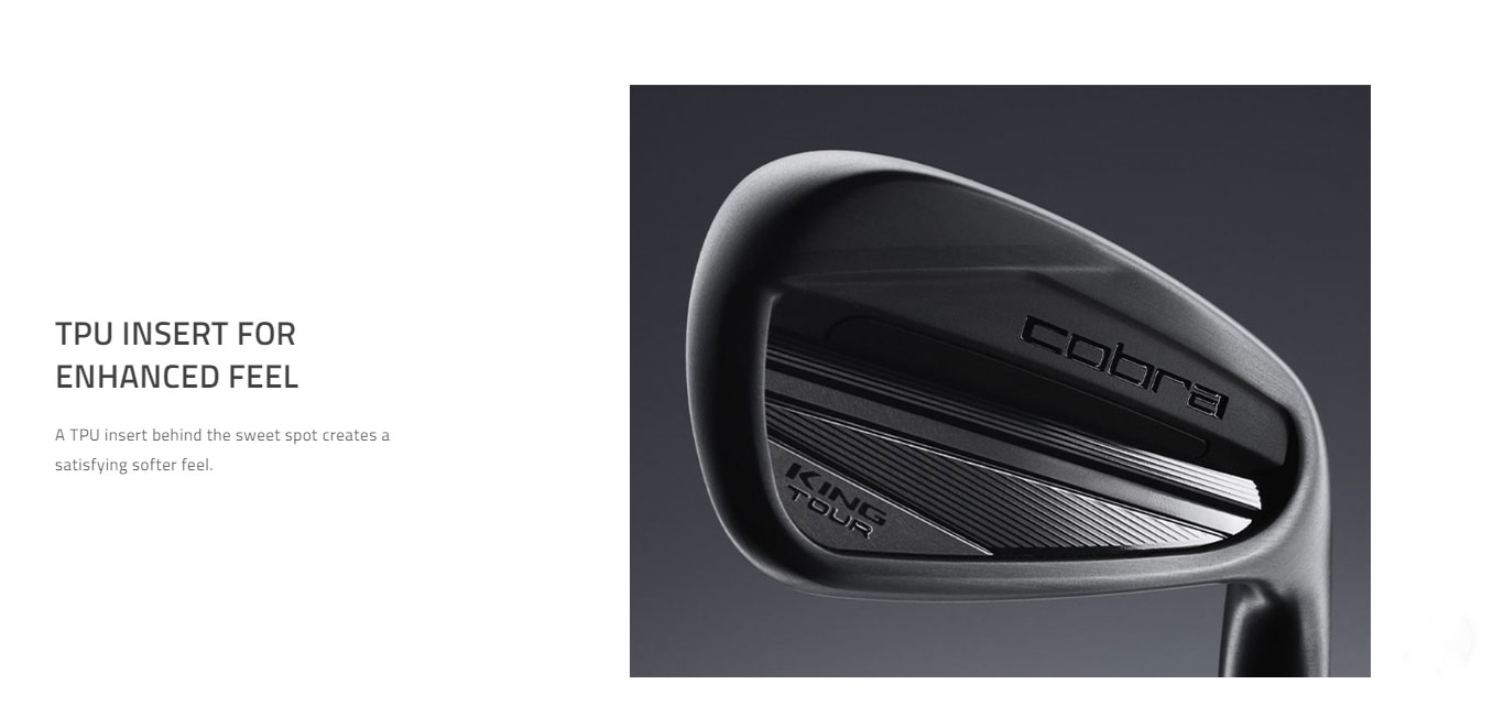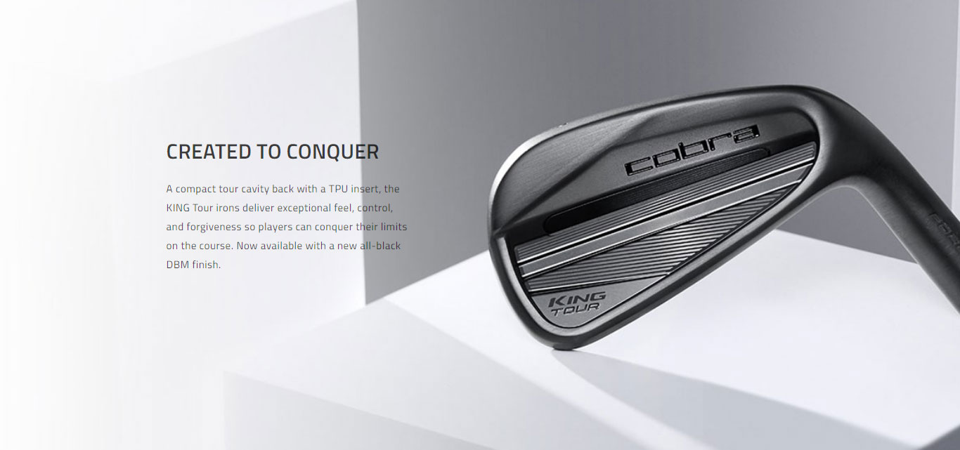 A compact tour cavity back with a TPU insert, the KING Tour irons deliver exceptional feel, control, and forgiveness so players can conquer their limits on the course. Now available with a new all-black DBM finish. COBRA’s most durable, visually appealing, black satin finish diffuses sunlight, helping to maintain a sleek look over a long period of time, while offering extreme resistance to wear for longer lasting, better-looking irons. A compact address profile inspires more accuracy, more control, more forgiveness, and more confidence so you can conquer your limits. Crafted and 5-step forged from 1025 carbon steel for exceptional feel and compact shaping. A TPU insert behind the sweet spot creates a satisfying softer feel.