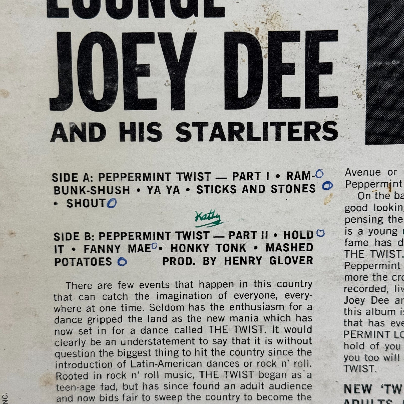 The product is a Joey Dee & The Starliters "Doin' The Twist" LP released in 1961 on Roulette Records.