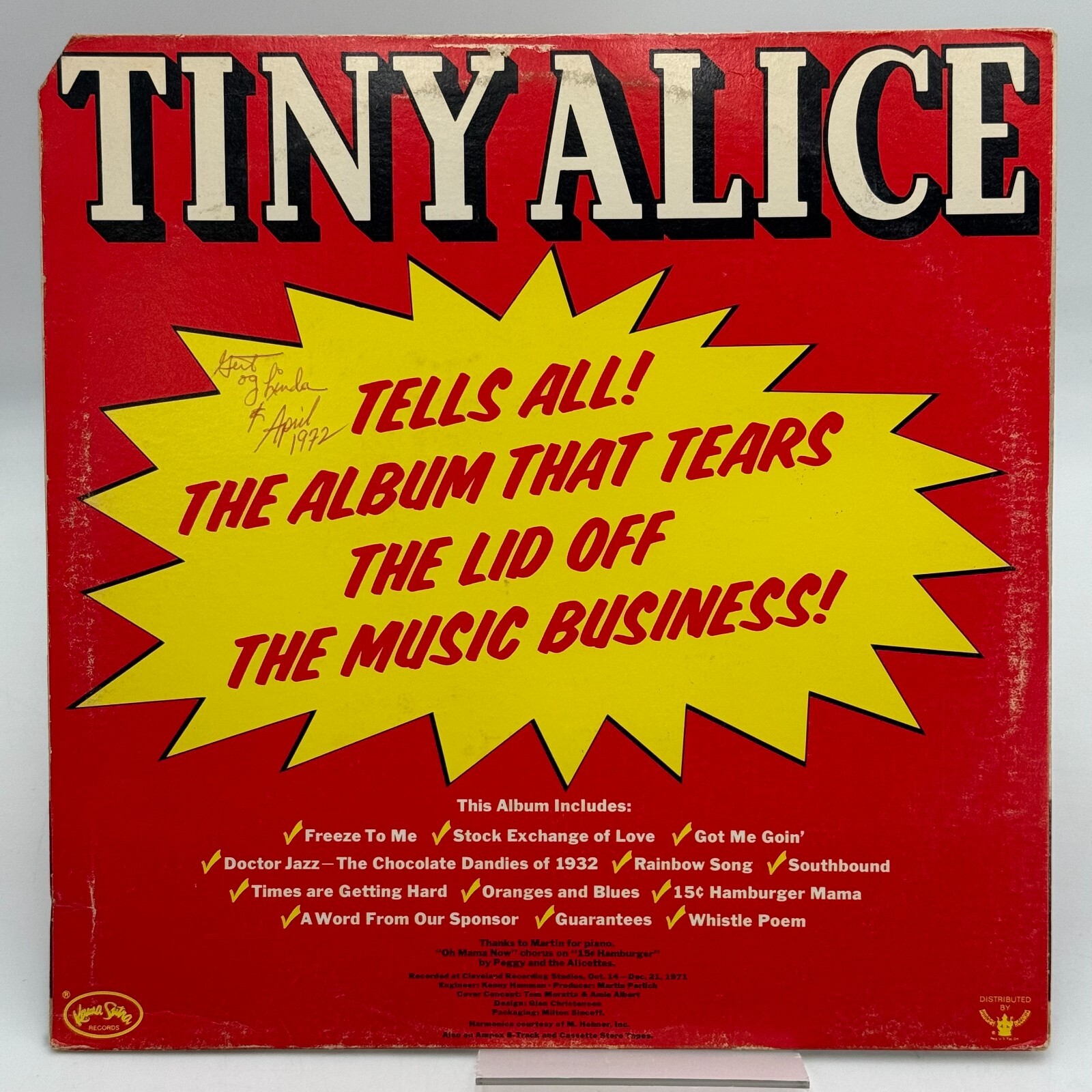 The "Tiny Alice" vinyl LP is a psychedelic rock record released in 1972 by Tiny Alice Jug Band on Kama Sutra Records.