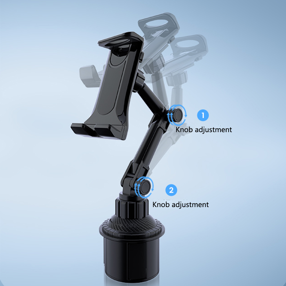 Made with heavy-duty adjustable base for stability, the cup holder tablet car mount adapts to most standard cup holders between 3.02"-4.62" and keeps the device from wiggling during a hard drive, making it easy for phone calls, map-viewing, and hassle-free charging