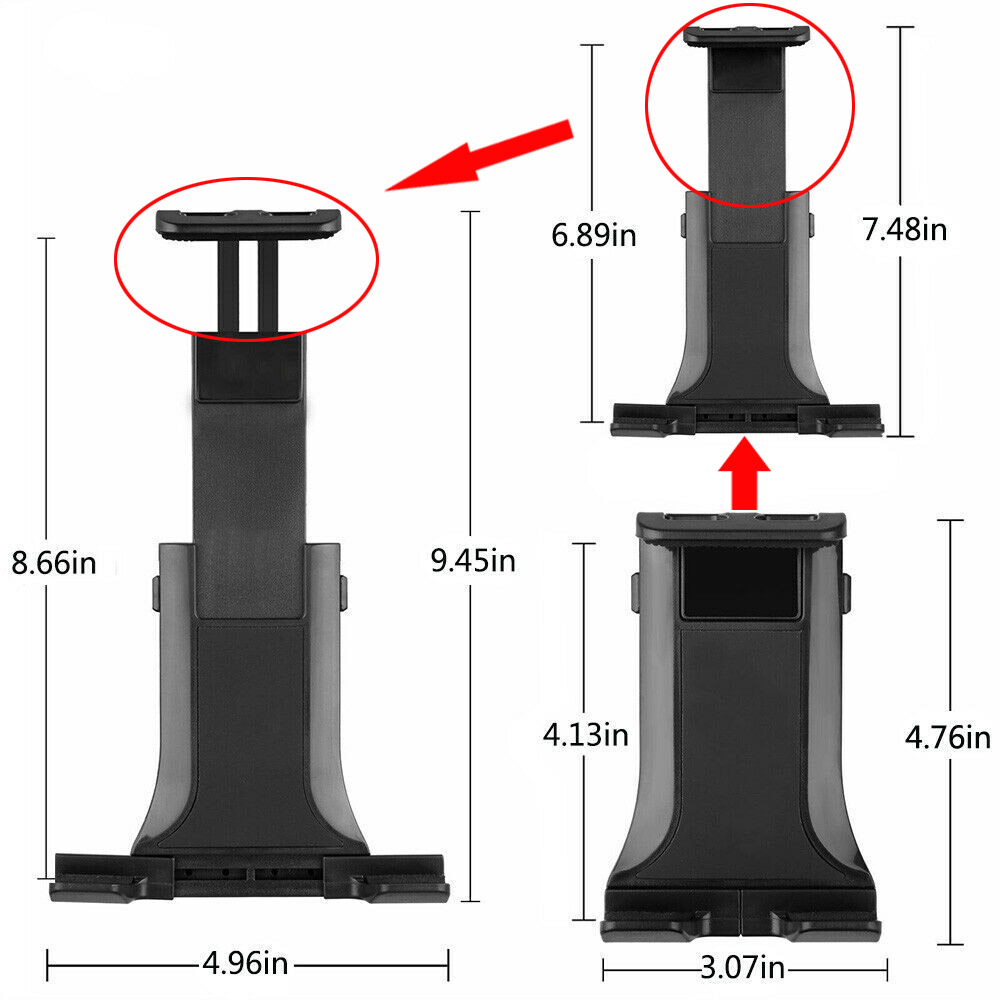 No more annoying screws needed, just pull and push to adjust the height; the tablet cup holder mount can reach a maximum height of 10.4” for easy operating and access to your device without blocking anything on the console; The flexible support and rotating head allows for viewing your tablet either in portrait or landscape mode