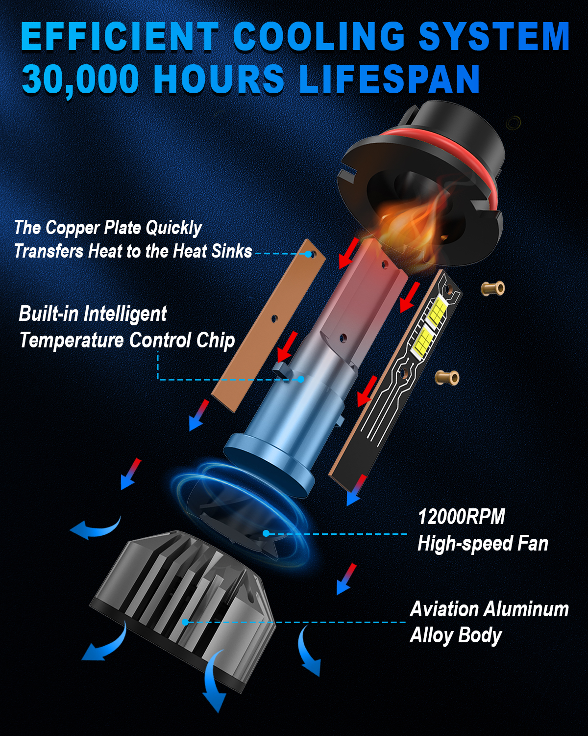 LONG LIFESPAN: The efficient cooling system with integral aerospace aluminum body, unique hollow engraved heat sink design and smart IC ensures a longer life for the LED conversion kit.