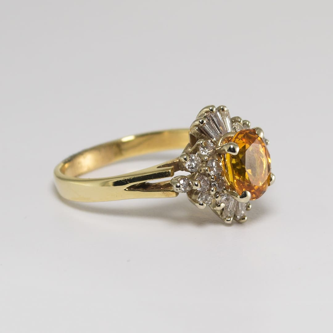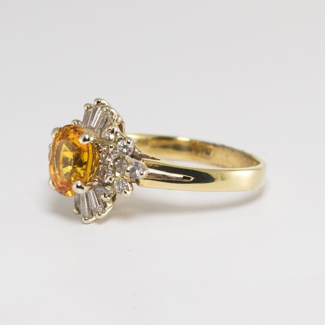 14K Yellow & White Oval Gold Golden Yellow Sapphire & Diamond Ring