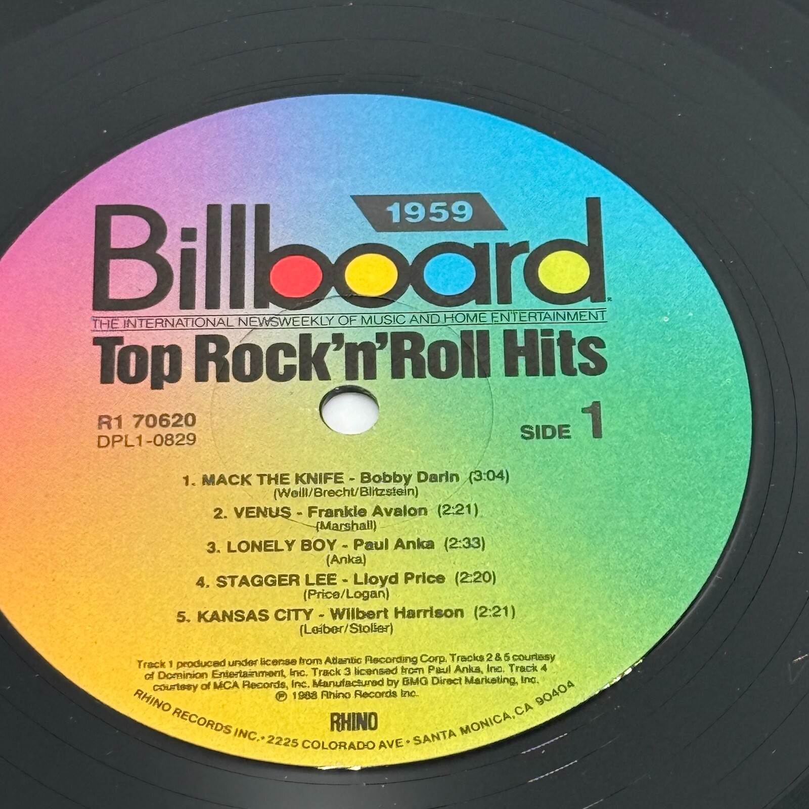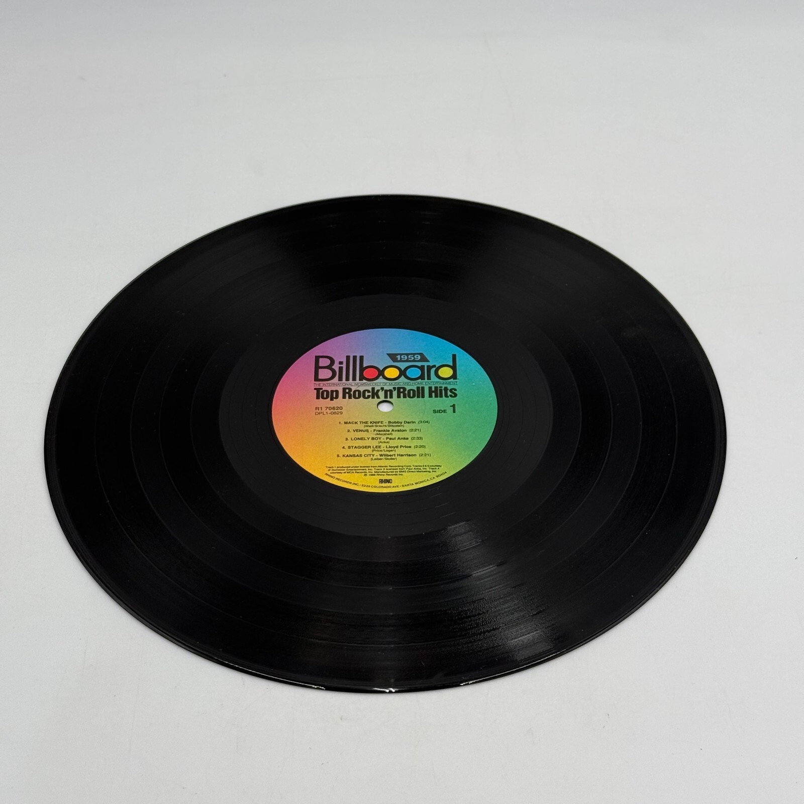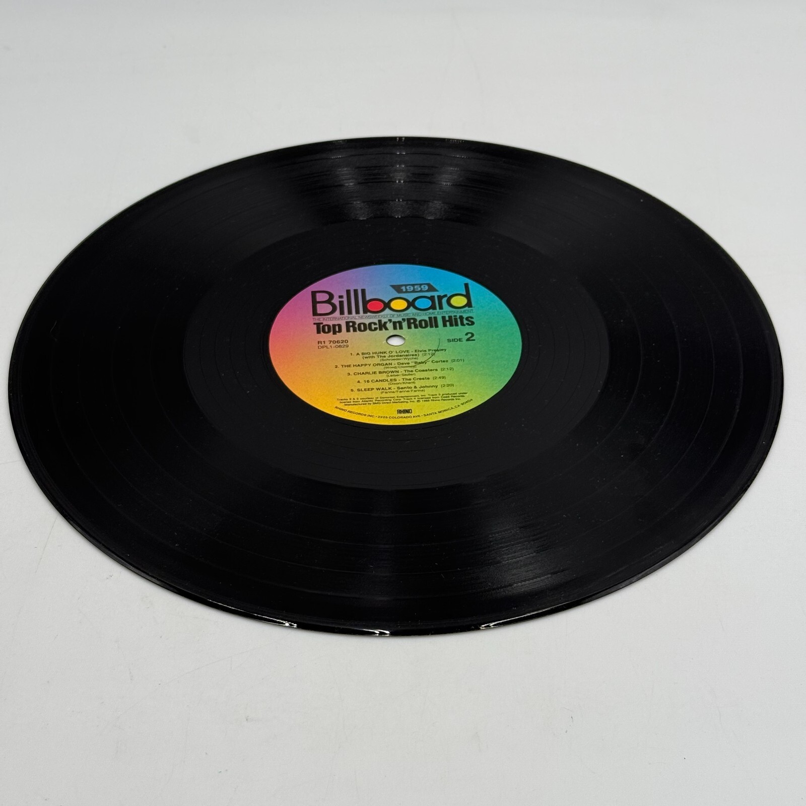 This rare 1959 Billboard Top Rock'n' Roll Hits vinyl LP features various artists such as Elvis Presley, T.O.P, and more.