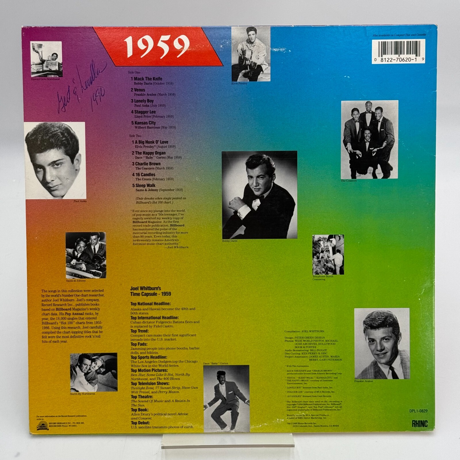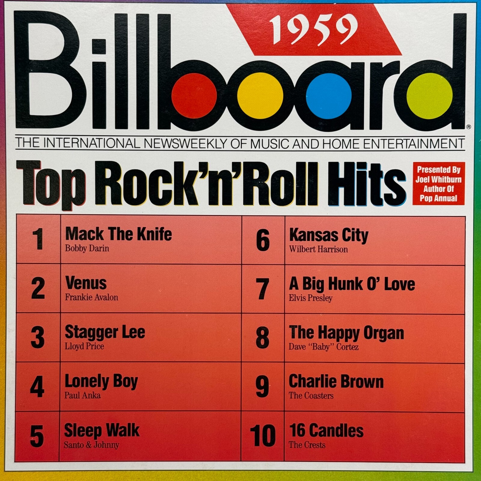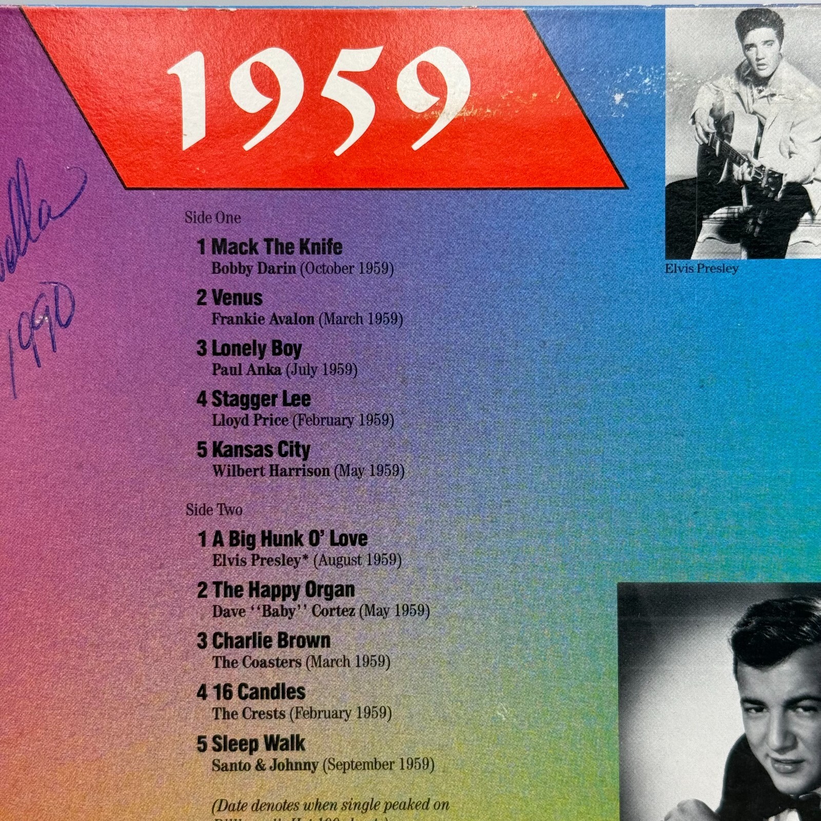 This rare 1959 Billboard Top Rock'n' Roll Hits vinyl LP features various artists such as Elvis Presley, T.O.P, and more.