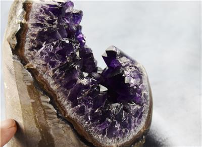 Geography - Value is determined by how deep the color is, the deeper the better. And how dark the purple is, again darker the better. In gemstones, the highest grade amethyst (called "Deep Russian") is exceptionally rare and therefore, when one is found it's highly valued by gemstone collectors. A very, very close second is the Uruguay Amethyst you see here, deep dark rich purple.