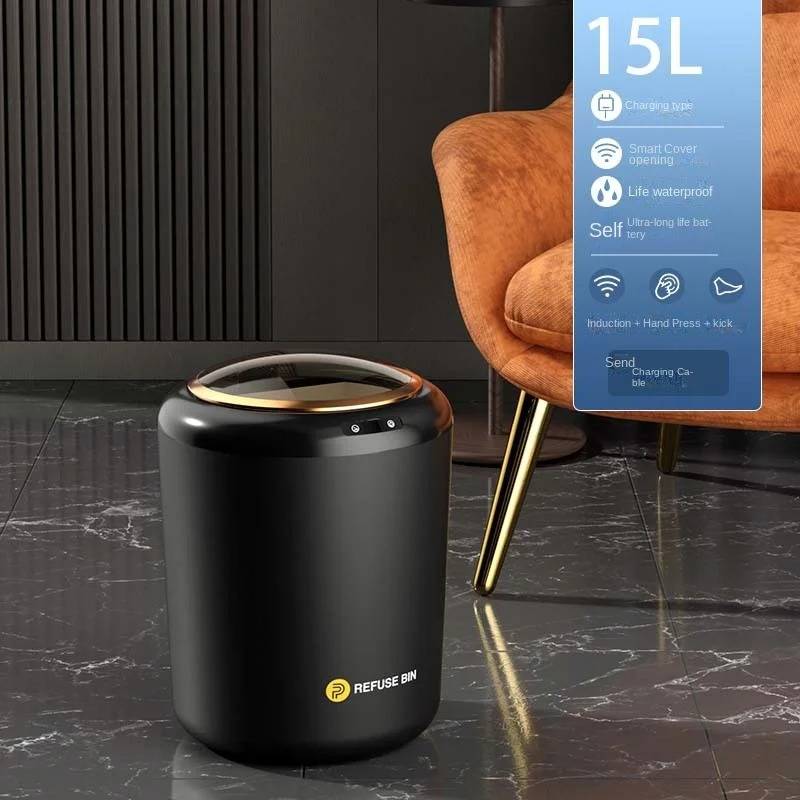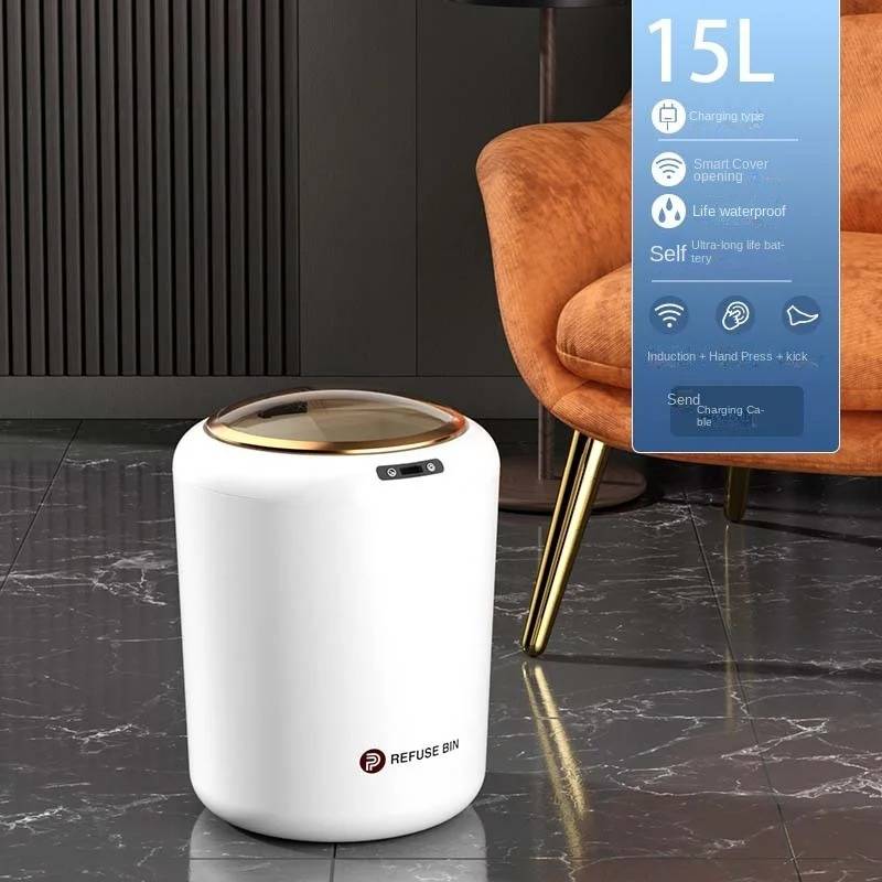 15L Smart Induction Trash Can Electric Induction Dustbin Waterproof Wastebasket Automatic Waste Bin For Kitchen Bathroom Garbage