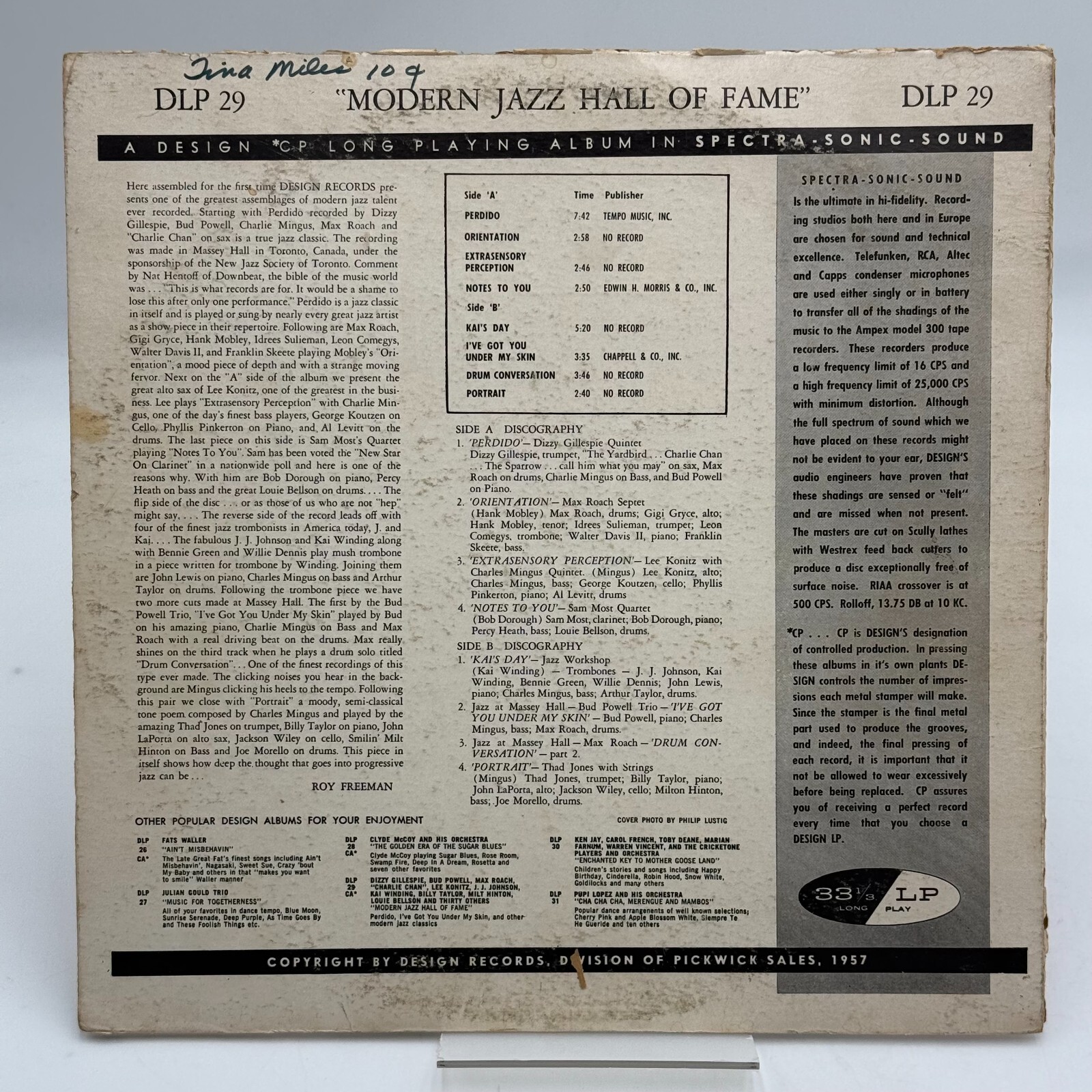 This LP is a must-have for any jazz fan, with its unique selection of artists and genres from the 1950s.