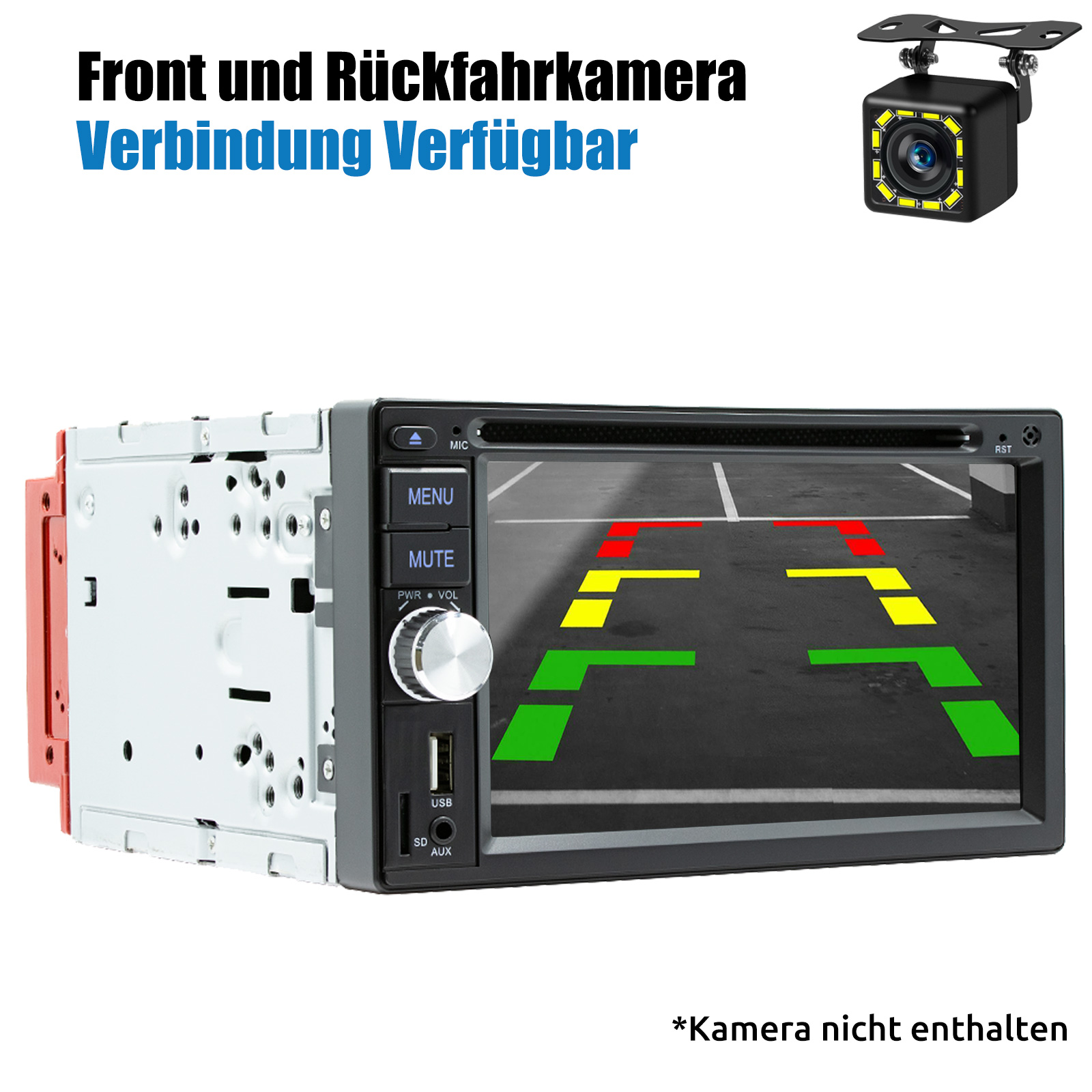 Rückfahrkamera: Nach dem Anschließen der Rückfahrkamera können Sie das Video auf dem Radiobildschirm über die Rückfahrkamera sehen, wenn Sie Ihr Auto rückwärts fahren. Der 6,2-Zoll-Touchscreen zeigt automatisch das Rückwärtsbild an, sobald Sie den Rückwärtsgang einlegen. Dies macht Ihr tägliches Rückwärtsfahren sicherer.