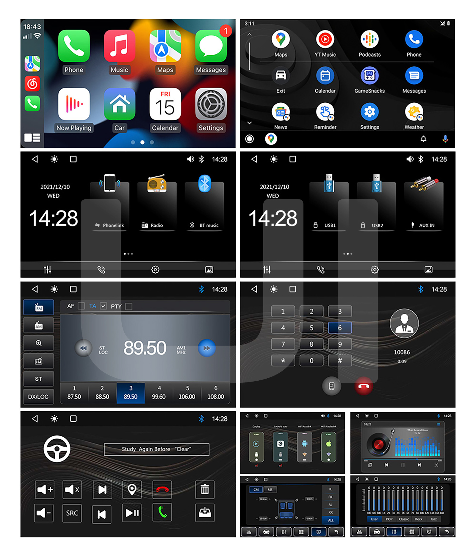 Phone Mirror Link: Das Autoradio mit CD/DVD-Player unterstützt die Mirror Link-Funktion, synchronisiert Ihr Telefon über ein USB-Kabel mit dem Bordbildschirm und zeigt Karten, Filme, YouTube usw. an. Es verfügt über einen 6,2-Zoll-HD-Touchscreen mit einer Auflösung von 800*480 und unterstützt die Wiedergabe von 1080P-Videos. Bestimmte Apps, die nicht von CarPlay unterstützt werden, können dennoch über diese Funktion angezeigt werden. (Bitte beachten Sie: 1. Dies ist die MirrorLink-Funktion, nicht die Carplay-Funktion. 2. MirrorLink dient dazu, den auf dem Mobiltelefonbildschirm angezeigten Inhalt auf den Doppel-DIN-Autoradio-Bildschirm zu spiegeln und unterstützt keine App-Bedienung auf dem Bildschirm).