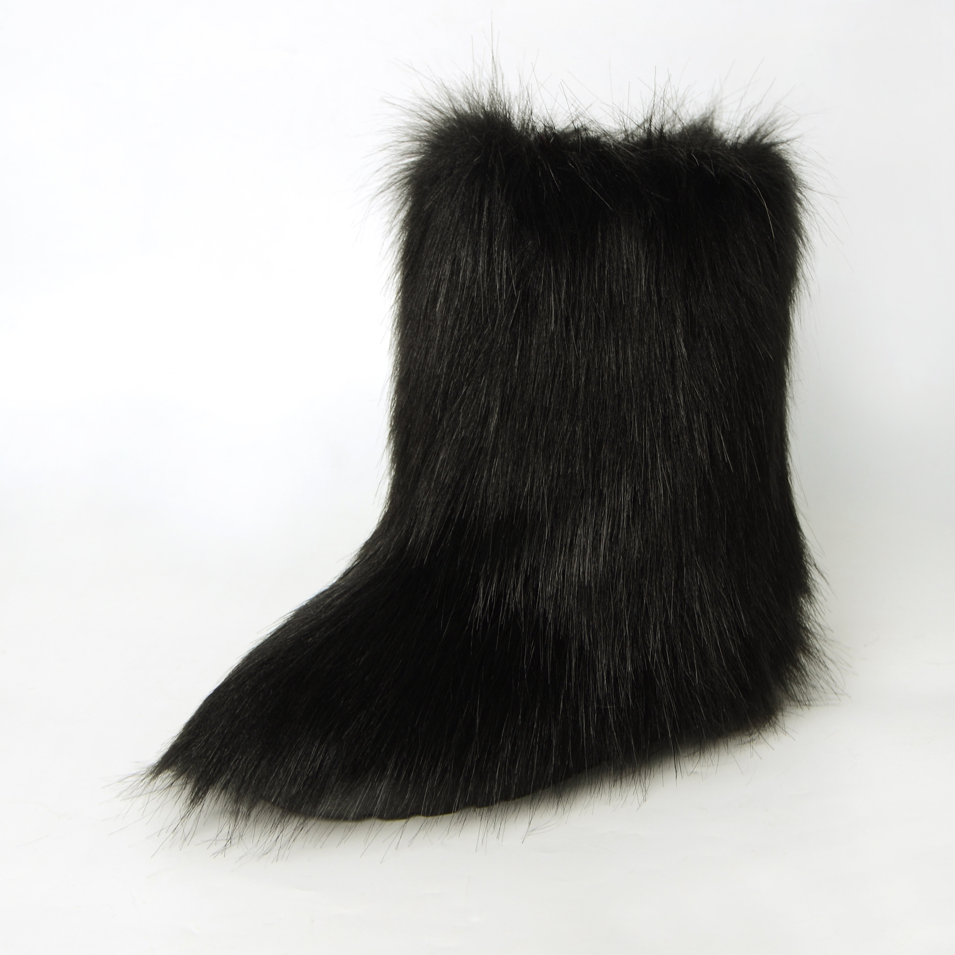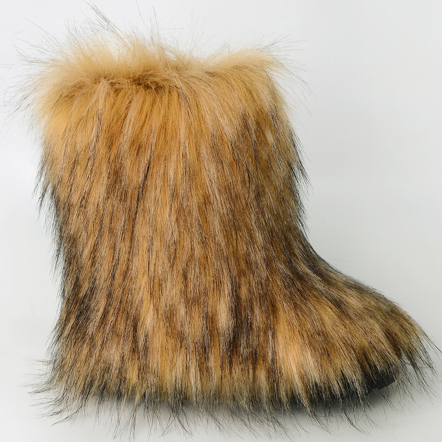 Women Faux Fur Boots Fuzzy Fluffy Furry Round Toe Winter Snow Boots Warm Shoes
