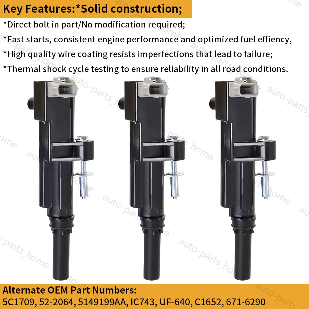 3 Ignition Coil & Wire Set & 6 Spark Plug for 2009-10 Dodge Ram 1500 3.7L UF640