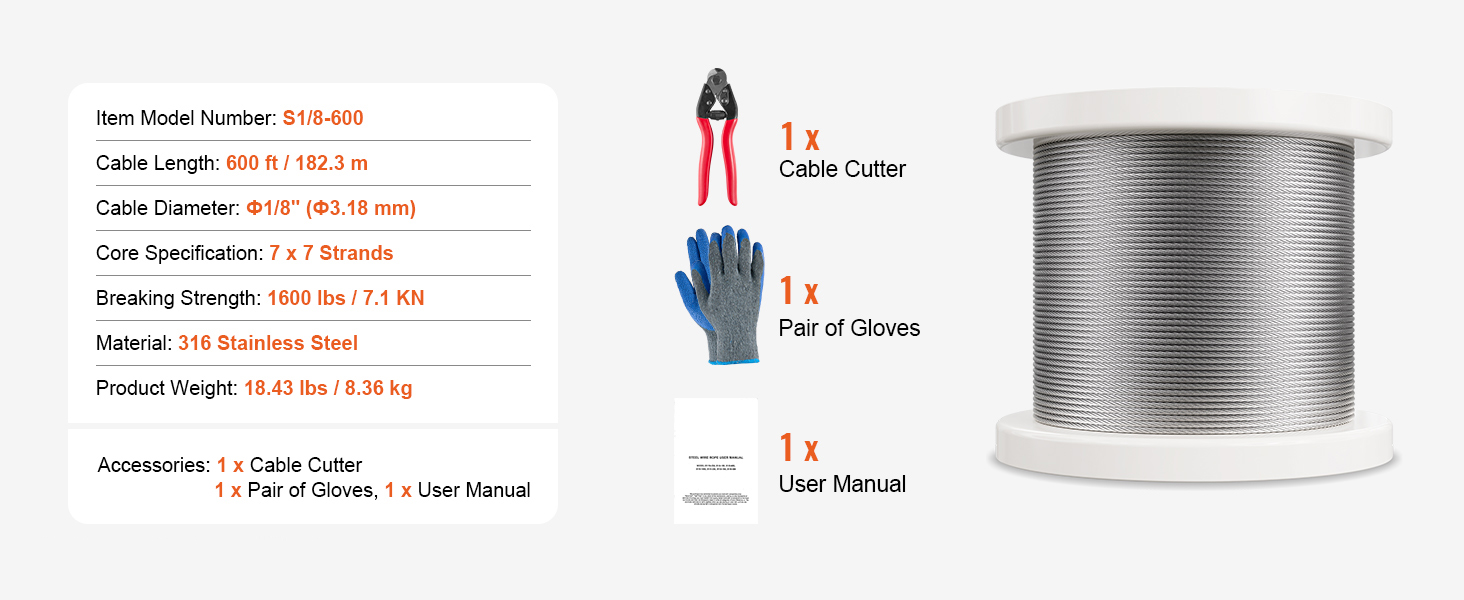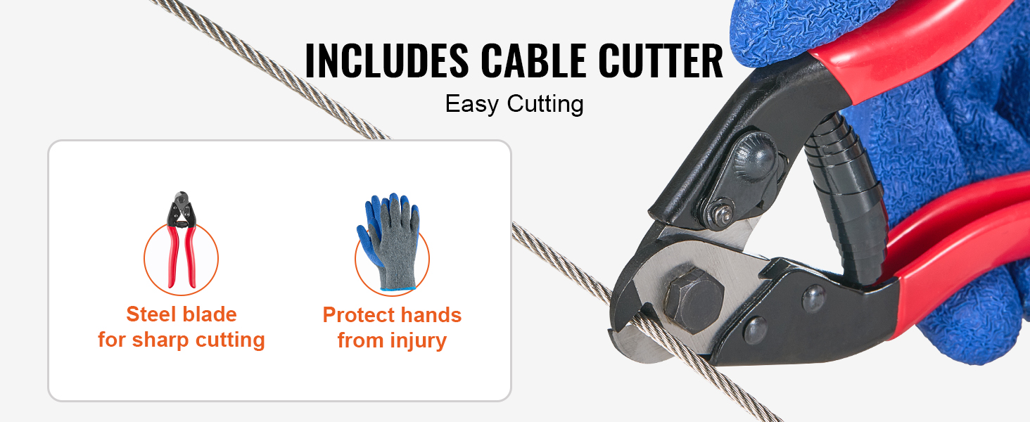 Cutting and using our aircraft cable is a breeze with the included steel blade cable cutter, and don't forget to wear the gloves for added safety!