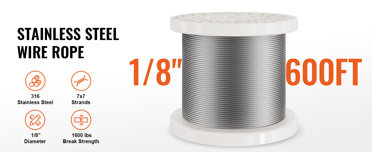 With a 7x7 braided construction, our 1/8" (3.18 mm) steel cable offers both flexibility and strength, making it ideal for various applications.