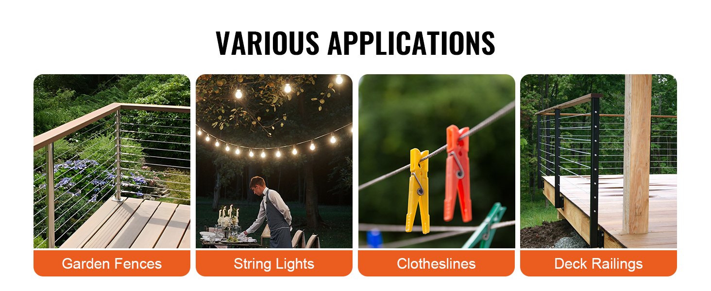 This versatile steel wire cable can be used for home garden fence installation, handrail strings, clotheslines, and industrial purposes.