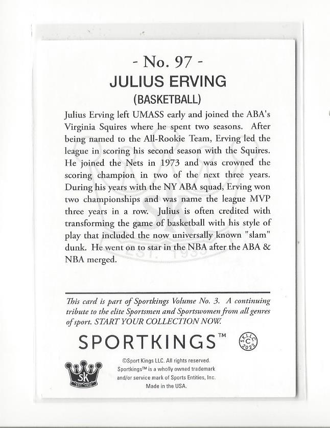2022 Sportkings Volume 3 #97 Julius Erving 76ers
