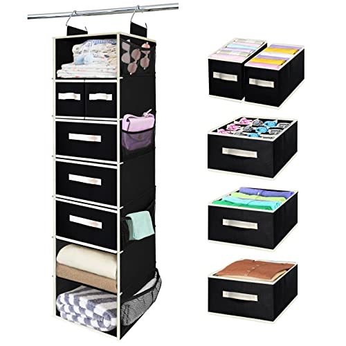 VERONLY 7-Shelves Hanging Closet Organizer with 5 Drawers, Hanging Closet Shelves Storage and 8 Mesh Pockets, Closet Organization and Storage for Wardrobe, Nursery, Baby, Underwear,Dorm,Black