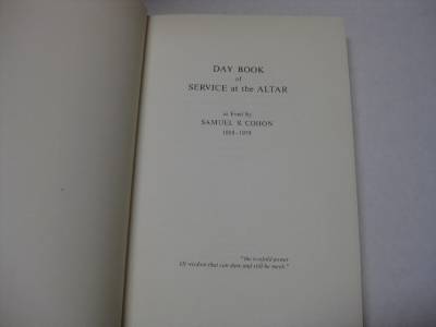 Day Book of Service at the Altar as lived by Samuel S. Cohon 1888-1959