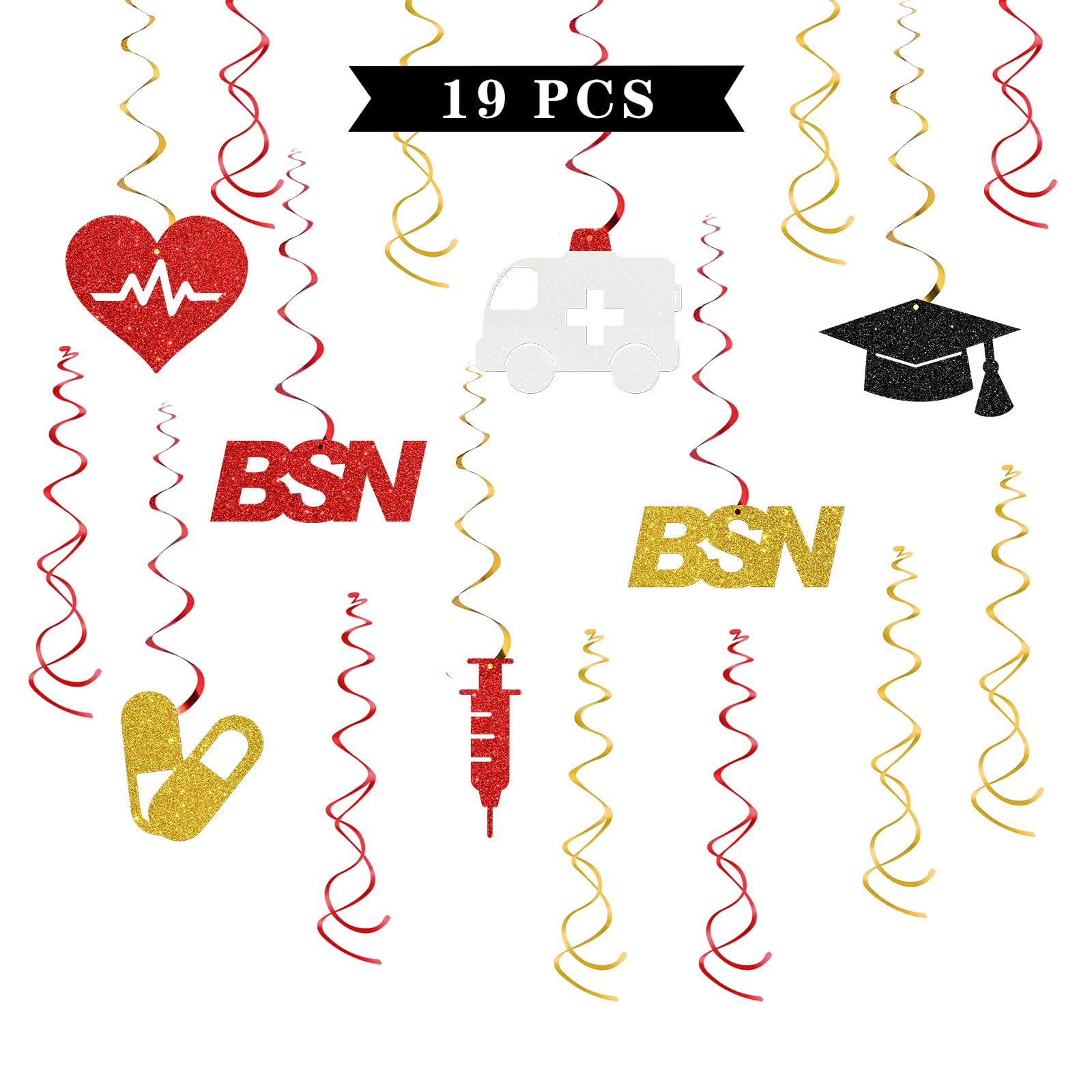 Maicaiffe BSN Graduation Hanging Swirl Decorations - 19 Pcs Congrats Nurse Party Supplies - Future RN Streamers - Medical Nursing School Graduation Foil Swirls Ceiling Decorations