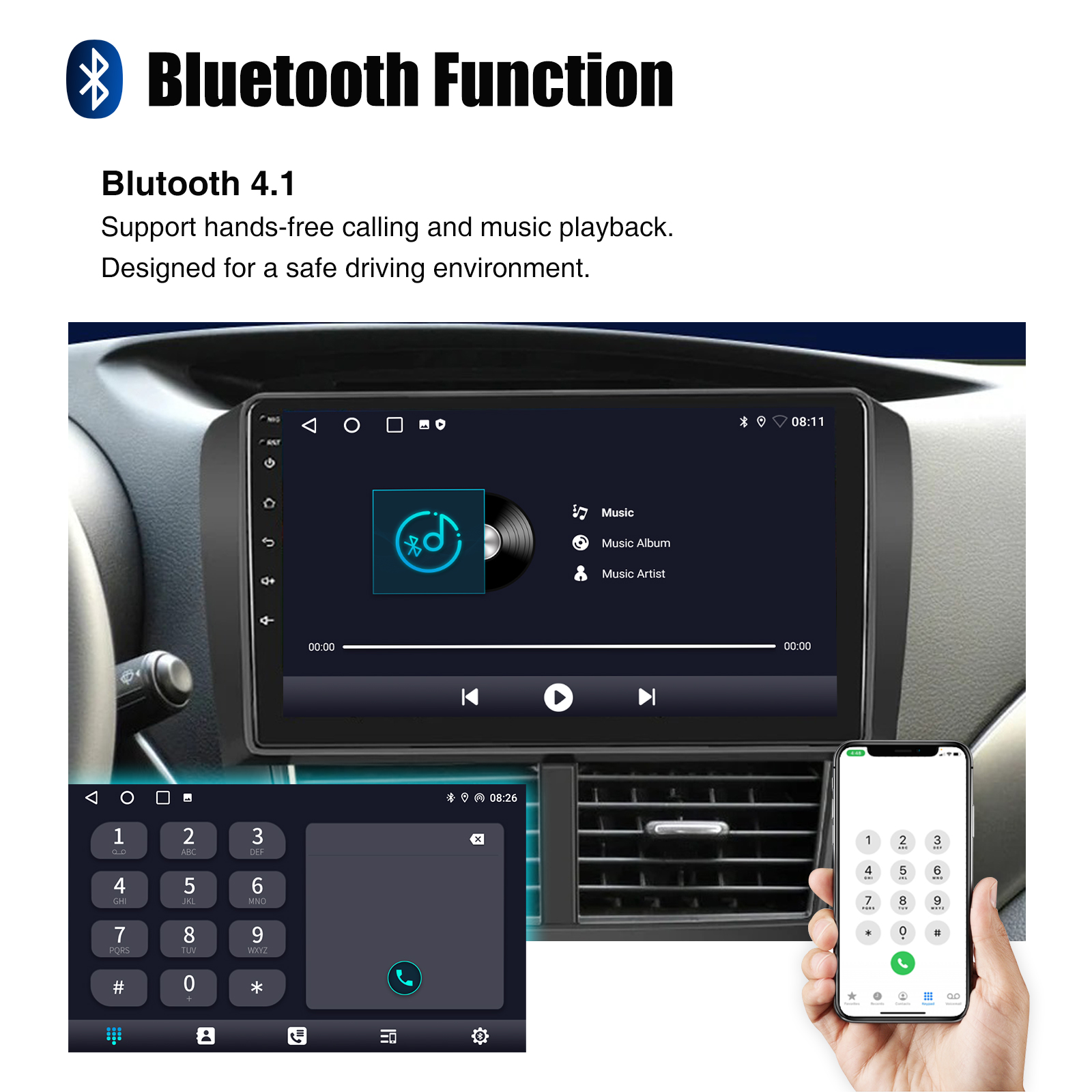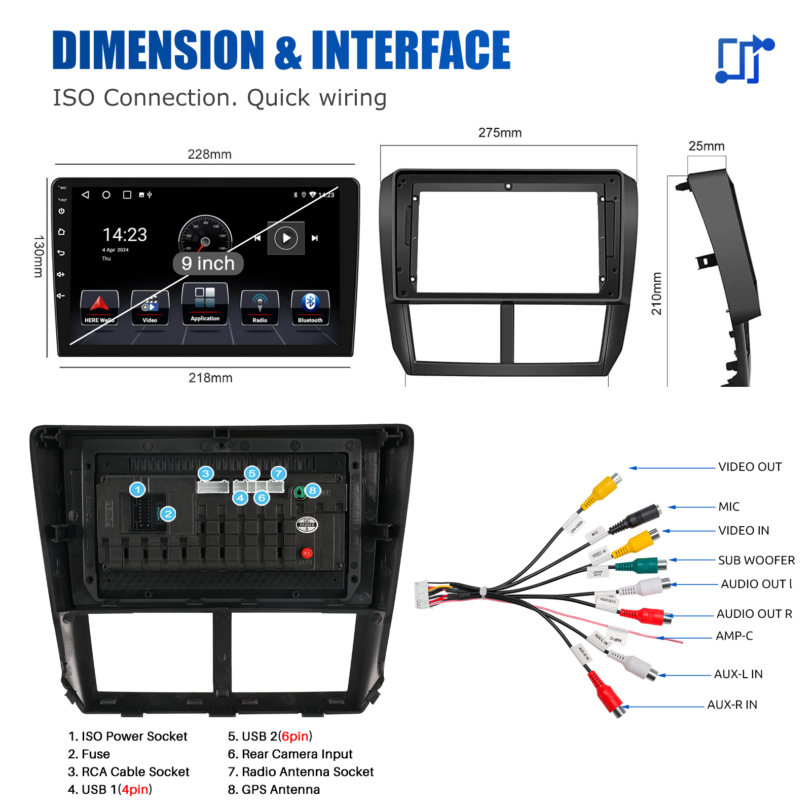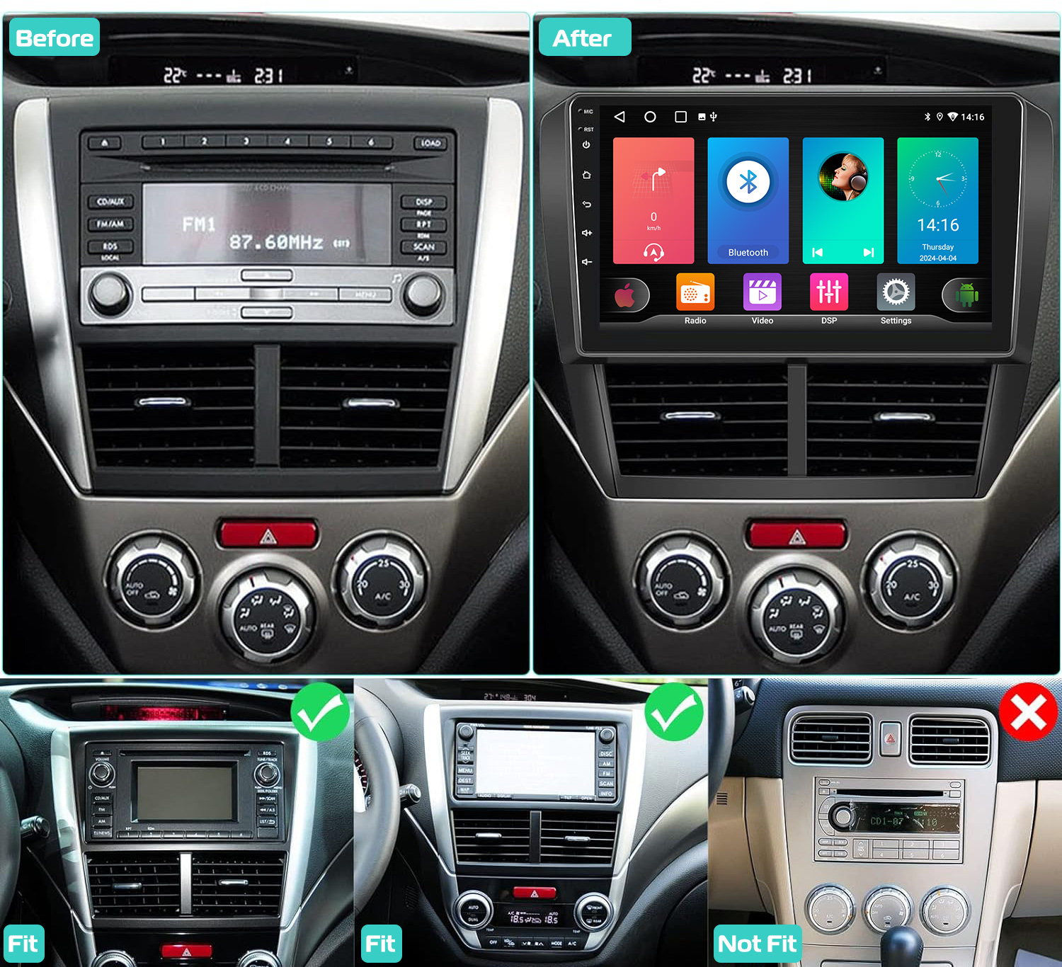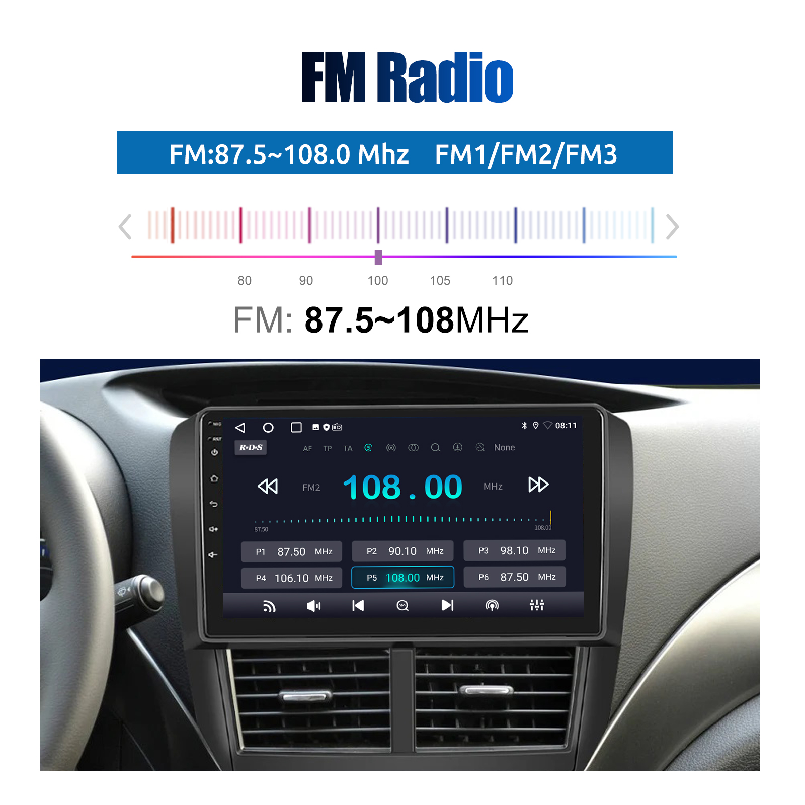 RDS/FM Radio & Bluetooth & ASP Sound Setting: Supports Bluetooth 4.1, with built-in microphone so you can make hands-free calls while driving. Support access to phone book, music playback interface, etc. RDS supported. You can save 18 FM radio stations. Built-in ASP chip. Supports 32-band EQ setting, which can be adjusted according to your personal preference. Which is very similar to your original sound. 4 x 45W amplifier, surround sound and subwoofer output