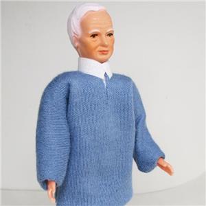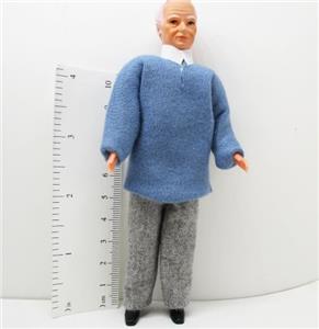 - miniature grandpa man doll, sculpted hair