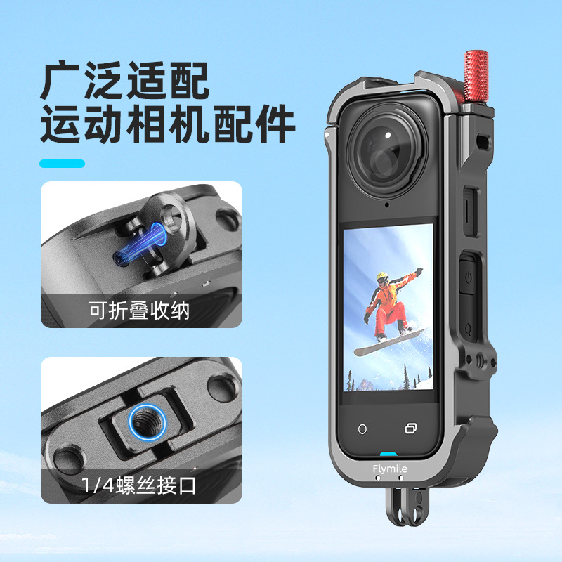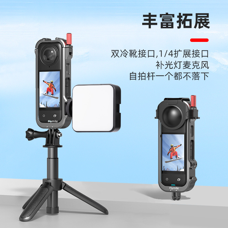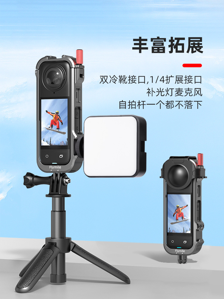 For Insta360 X4 Metal Frame Sports Camera Rabbit Cage Expansion Stand