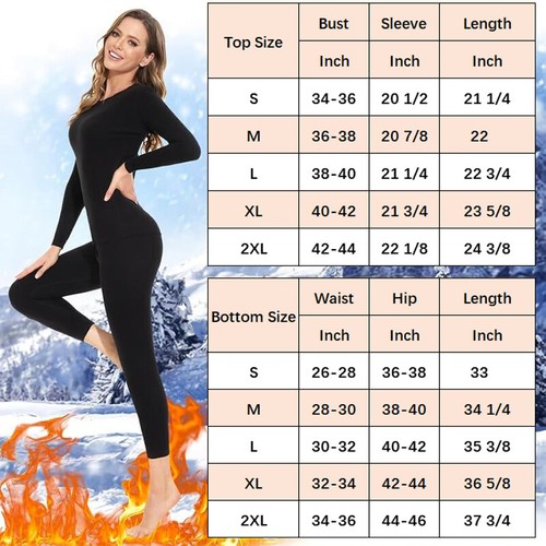 [ALL-DAY COMFORTABLE WEARING EXPERIENCE]: Size guide: Please order 1 size larger than you normally wear. Thermal underwear set made of 92% Soft Polyester / 8% Spandex fabric that feels cozily soft with fleece lined, lightweight but warm, long johns for women thermal sets give you a sense of security throughout the winter. Ladies thermal underwear set combines performance with fashion to give you a more streamlined look.