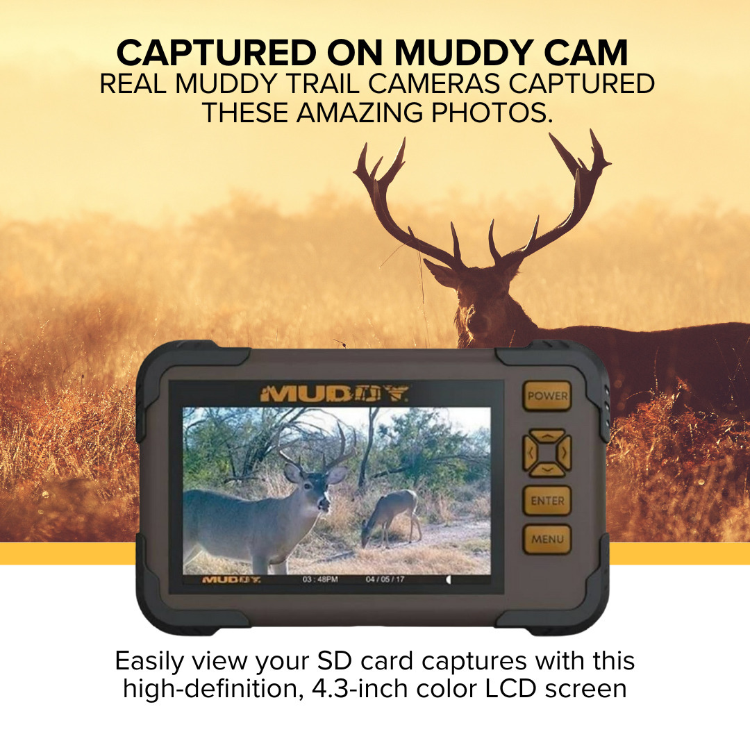 With Muddy SD Card Reader/Viewer with 4.3 Inch LCD Screen easily view SD card images on the go featuring 1080P video playback in a durable water resistant housing. Product Features 1080P Video Playback 4.3 inch color LCD.