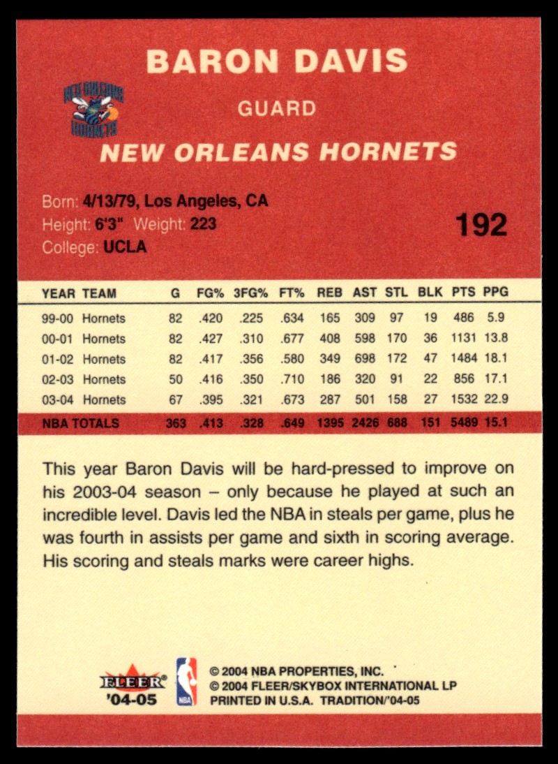 2004-05 Fleer Tradition Baron Davis New Orleans Hornets #192