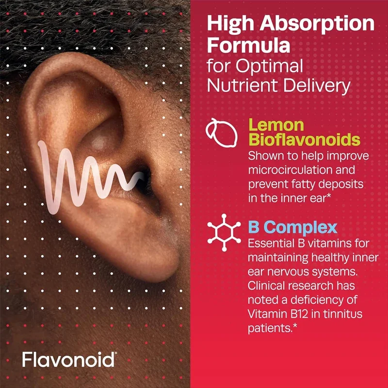 Flavonoids are formulated with a unique blend of vitamins and minerals to help support healthy hearing function and promote optimal hearing. Reduces symptoms of vertigo, dizziness, spinning and shaking.