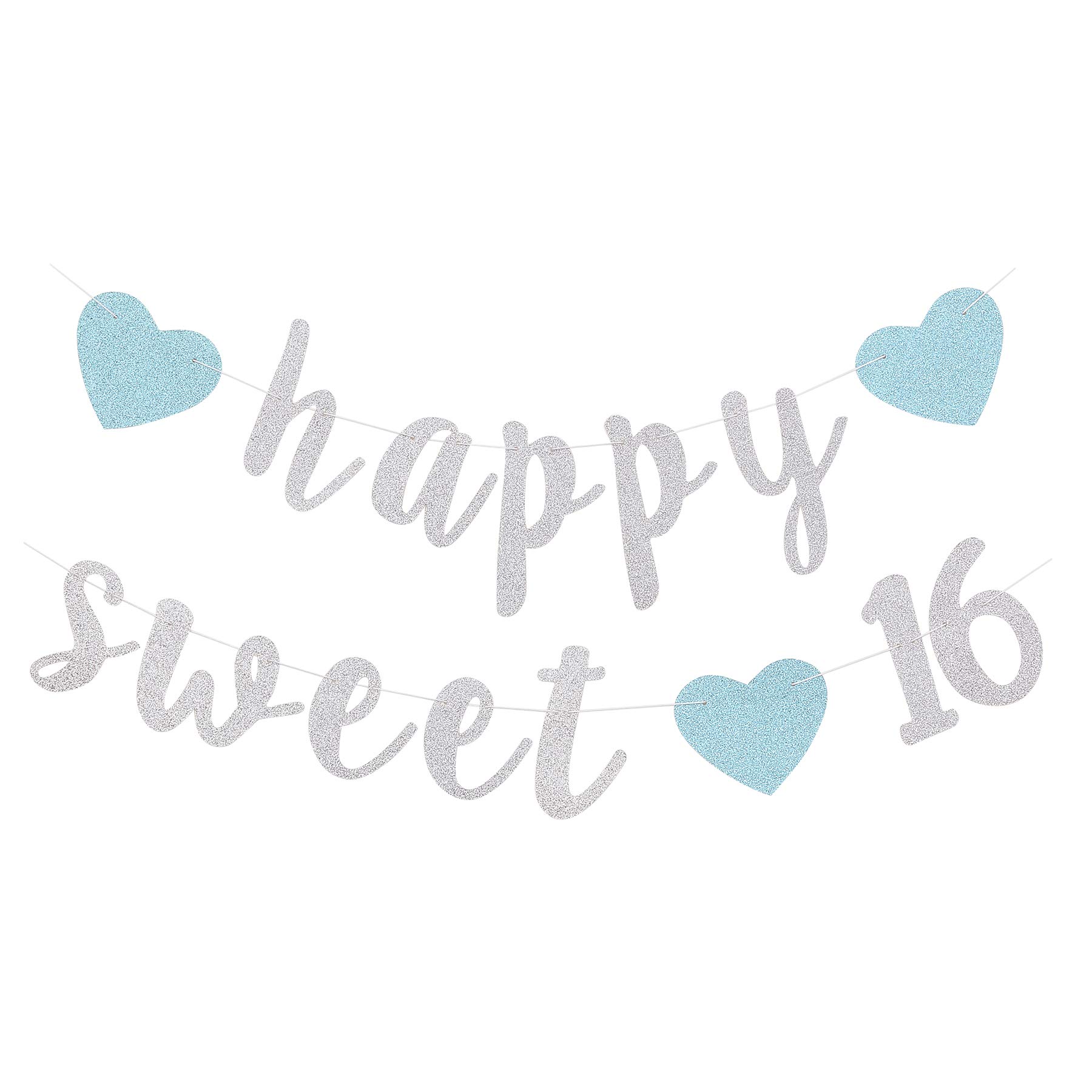 Happy Sweet 16 Banner 16th Birthday Party Sign Decoration Bunting - Glitter Silver