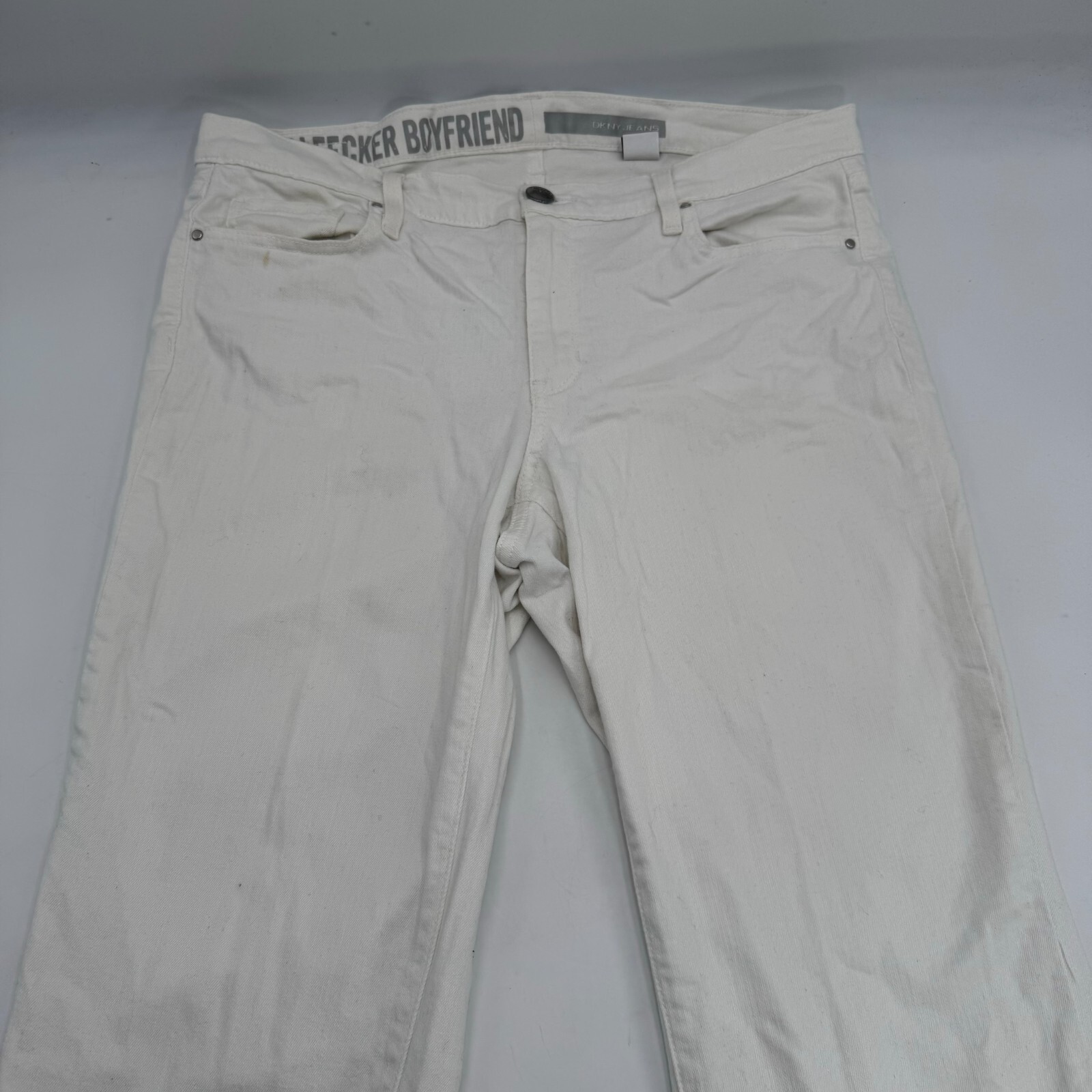 Elevate your casual wardrobe with the DKNY Jeans Bleecker Boyfriend in a crisp white hue. Tailored for comfort and style, these size 14W jeans boast a classic stretch denim fabric that contours to your shape for a flattering fit. The light fabric wash adds a touch of elegance, making these jeans versatile for both day-to-day wear and casual outings.