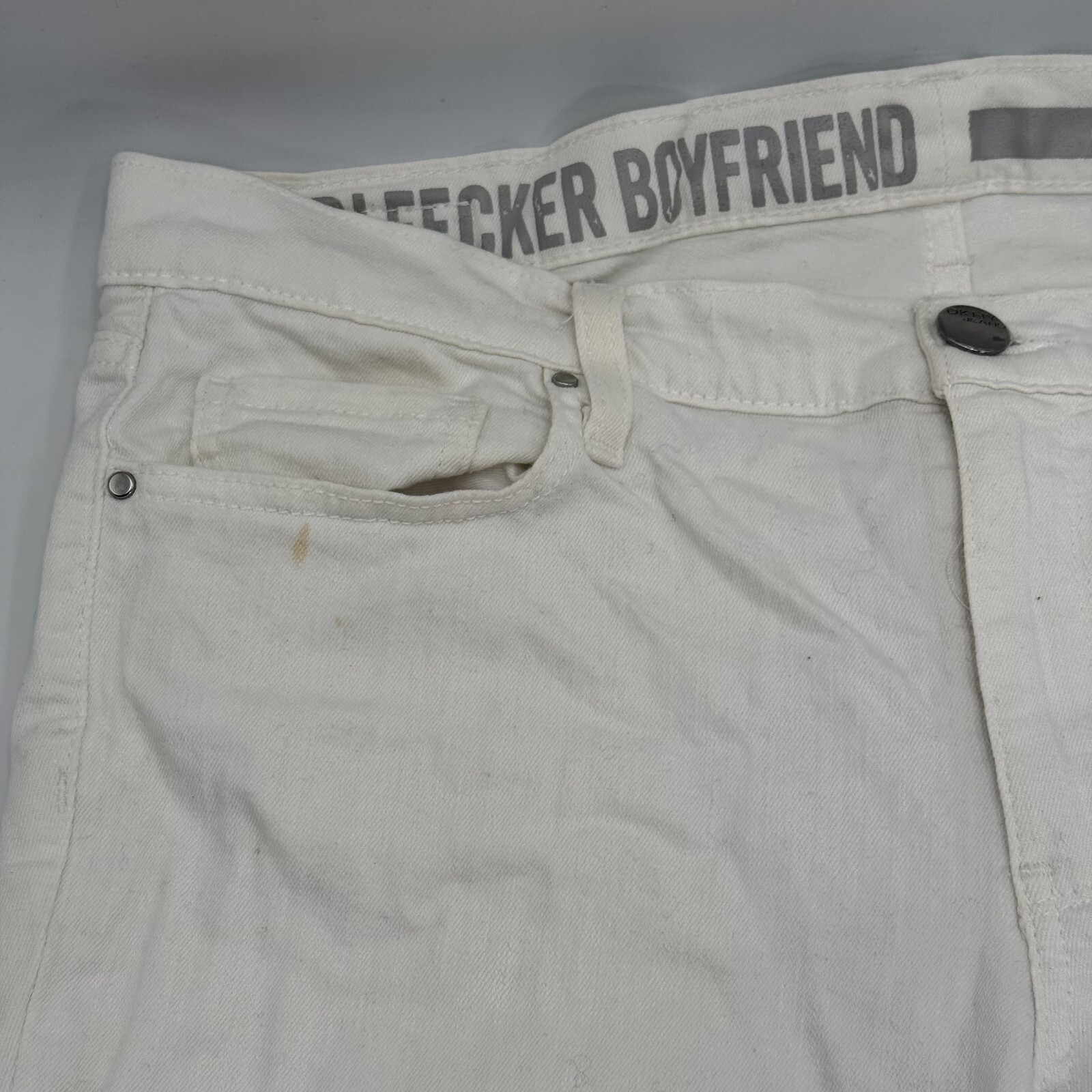The solid white color allows for endless styling possibilities, whether paired with a simple tee or dressed up with a blouse. The regular fit ensures ease of movement, while the boyfriend style offers a relaxed, yet tailored look. DKNY's attention to detail is evident in the construction of these jeans, making them a staple for any fashion-forward wardrobe.