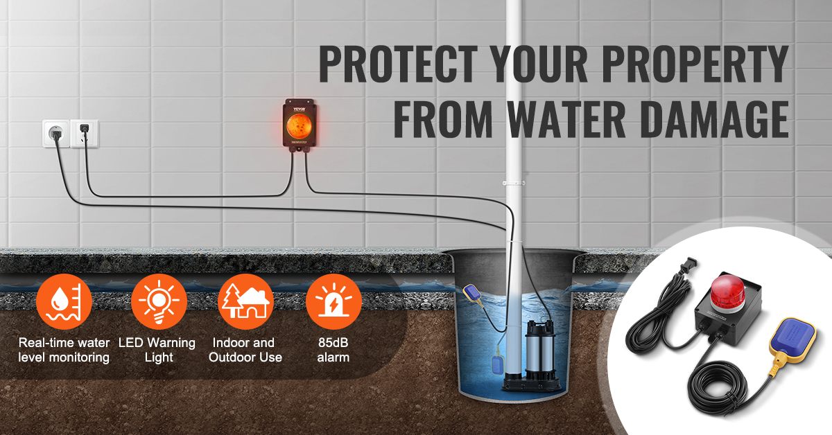 This sewage pump alarm monitors water levels and alerts you when they're too high, preventing basement flooding. With an adjustable float sensor and weight, you can customize the monitoring height. It's suitable for indoor and outdoor use, perfect for basements and water storage stations.
