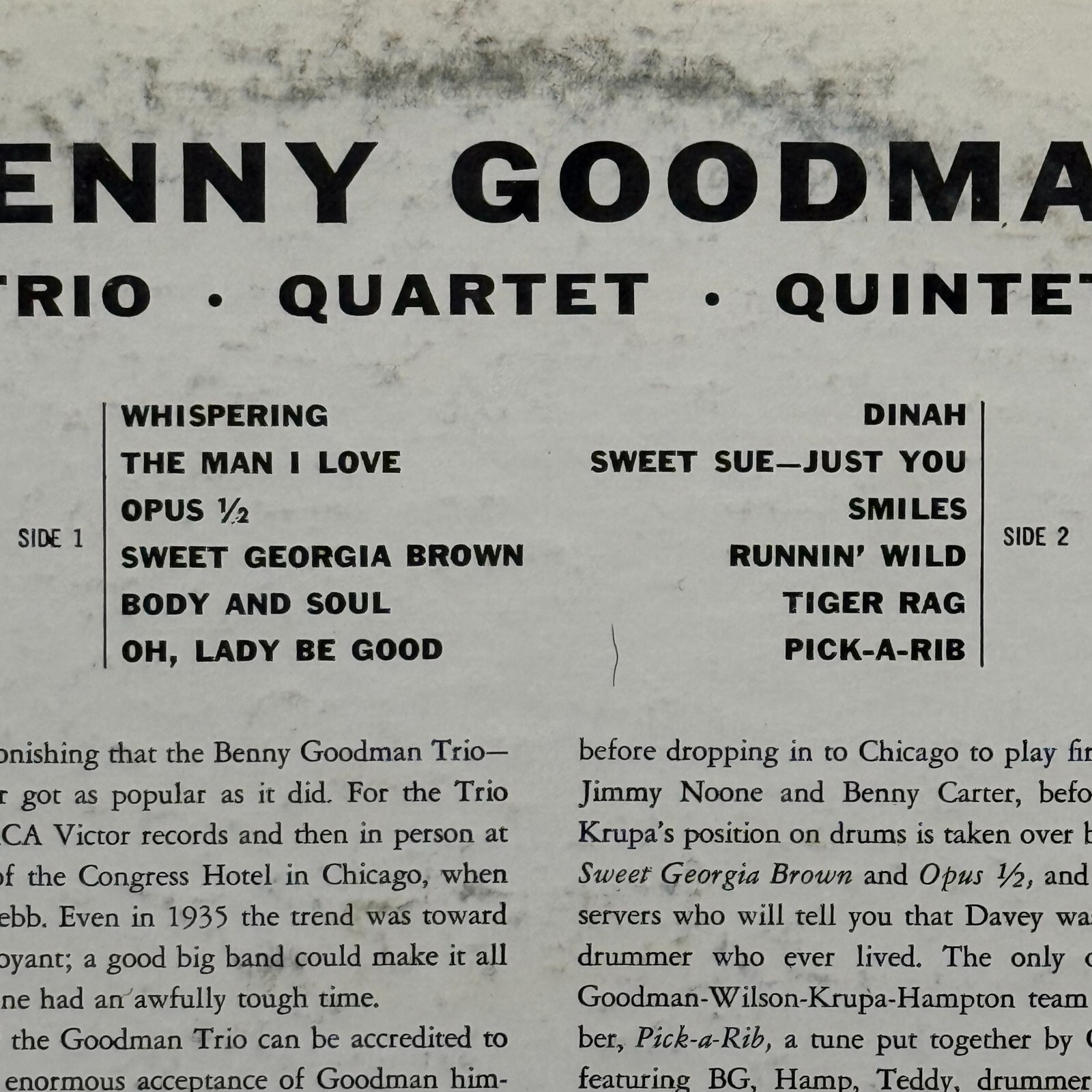 Dive into the classical era with the Benny Goodman Trio Quartet Quintet LP, a testament to the timeless allure of quintessential swing music. Pressed in 1956, this vinyl album LPM-1226 captures the essence of an iconic period in musical history, featuring the masterful compositions and performances that defined a generation.