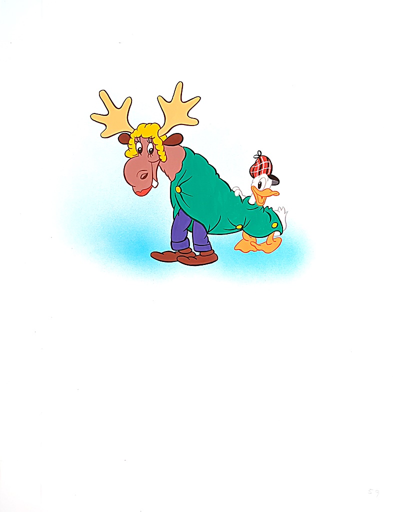 Disney-Originalzeichnung aus "Eine Ente wie du und ich" 1984 Donald & Elchkostüm